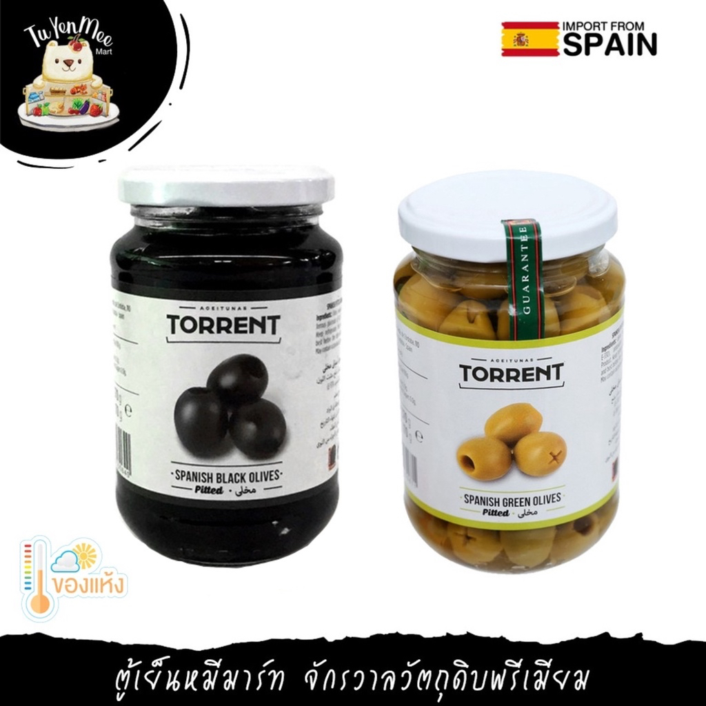 350G/BTL ผลมะกอกดำ/เขียว ชนิดไม่มีเมล็ดในน้ำเกลือ “TORRENT” PITTED BLACK/GREEN OLIVES
