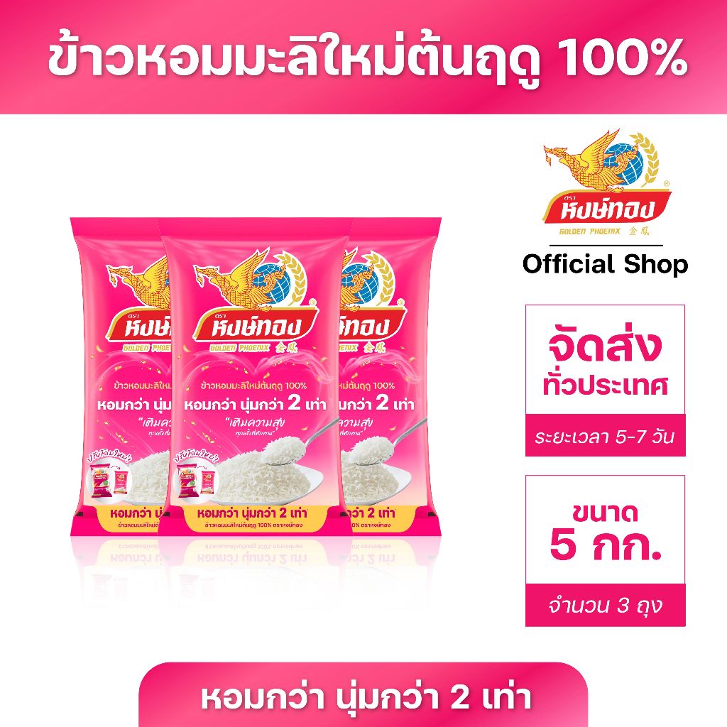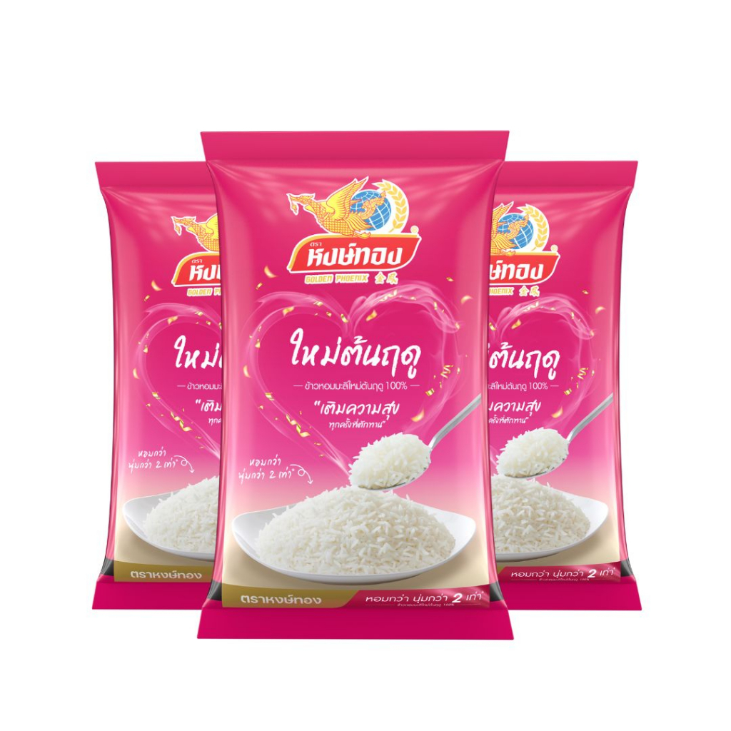 หงษ์ทอง ข้าวหอมมะลิใหม่ต้นฤดู 100% ขนาด 5 กิโลกรัม (แพ็ค 3)N3