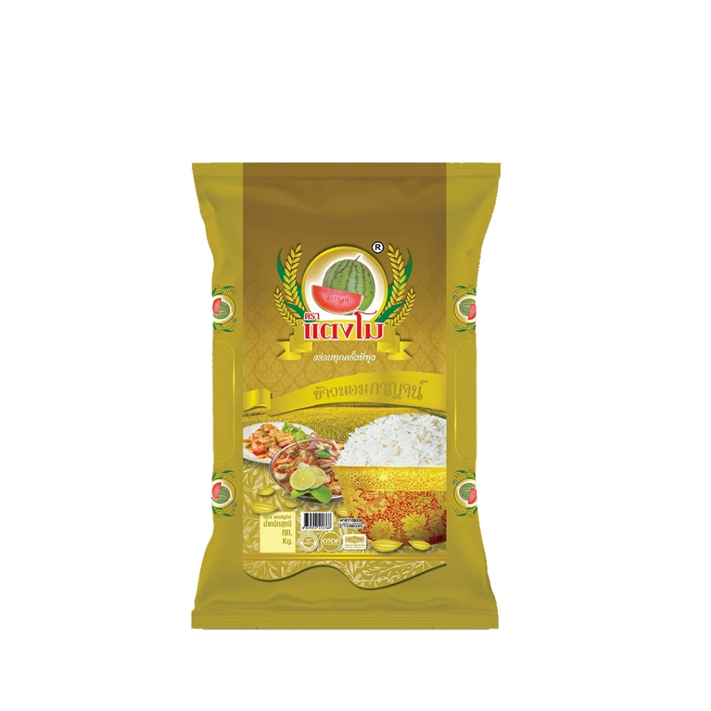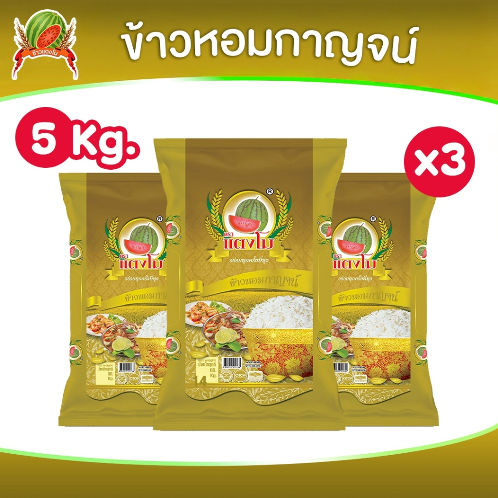 ได้รับข้าว 15 กก. ข้าวสาร ตราแตงโม “หอมกาญจน์” ขนาด 5 กก. (แพ็ค 3 ถุง) เท่ากับ ได้รับ 15 กก.