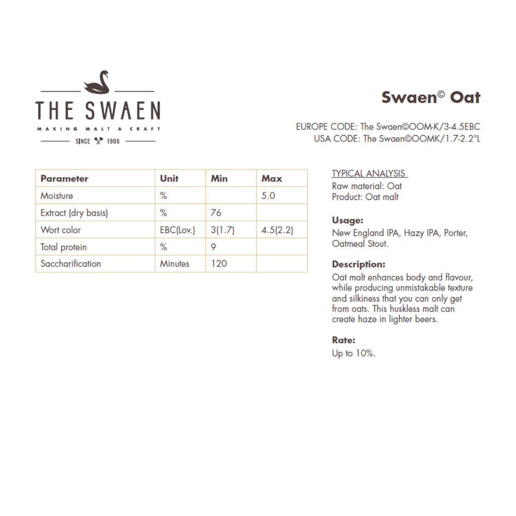 Malt มอลต์ The Swaen : Oat 1 Kg. สำหรับทำเบียร์ คราฟท์เบียร์ โฮมบรูว์ โรงเบียร์