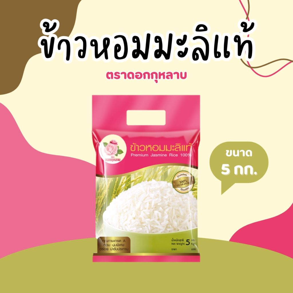 5 กิโลกรัม ข้าวหอมมะลิแท้ ตราดอกกุหลาบ *ขนาด 5 กิโลกรัม 1 ถุง*