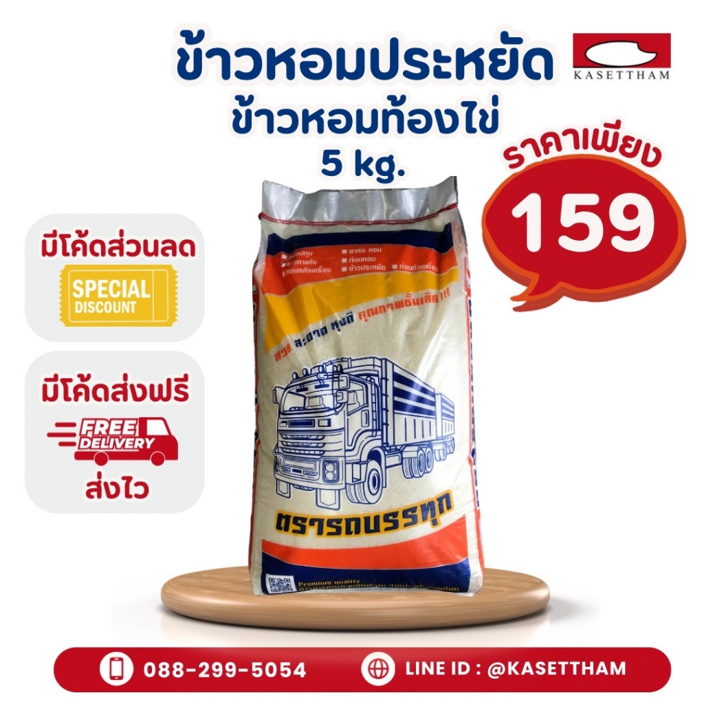5 กก. ข้าวหอมประหยัด ข้าวหอมท้องไข่ ข้าวสารตรารถบรรทุก ราคาโรงสี ส่งฟรี