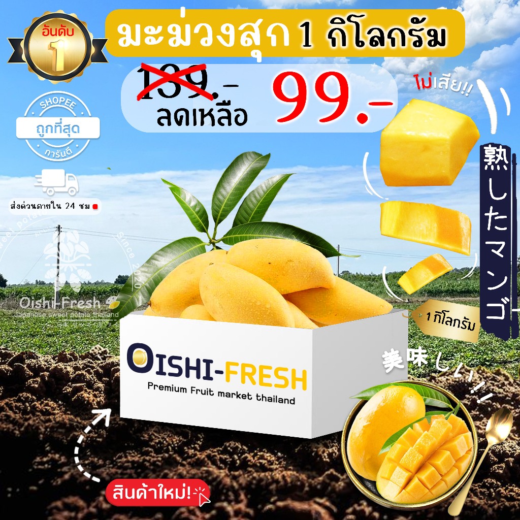 ??ส่งทันที 24ชม.?มะม่วงสุก ปลอดสารพิษ 1 กก. รสชาติ หอม หวาน สด ใหม่ ใยอาหารสูง หวานออร์แกนิค เคลมได้ 1-2 วัน