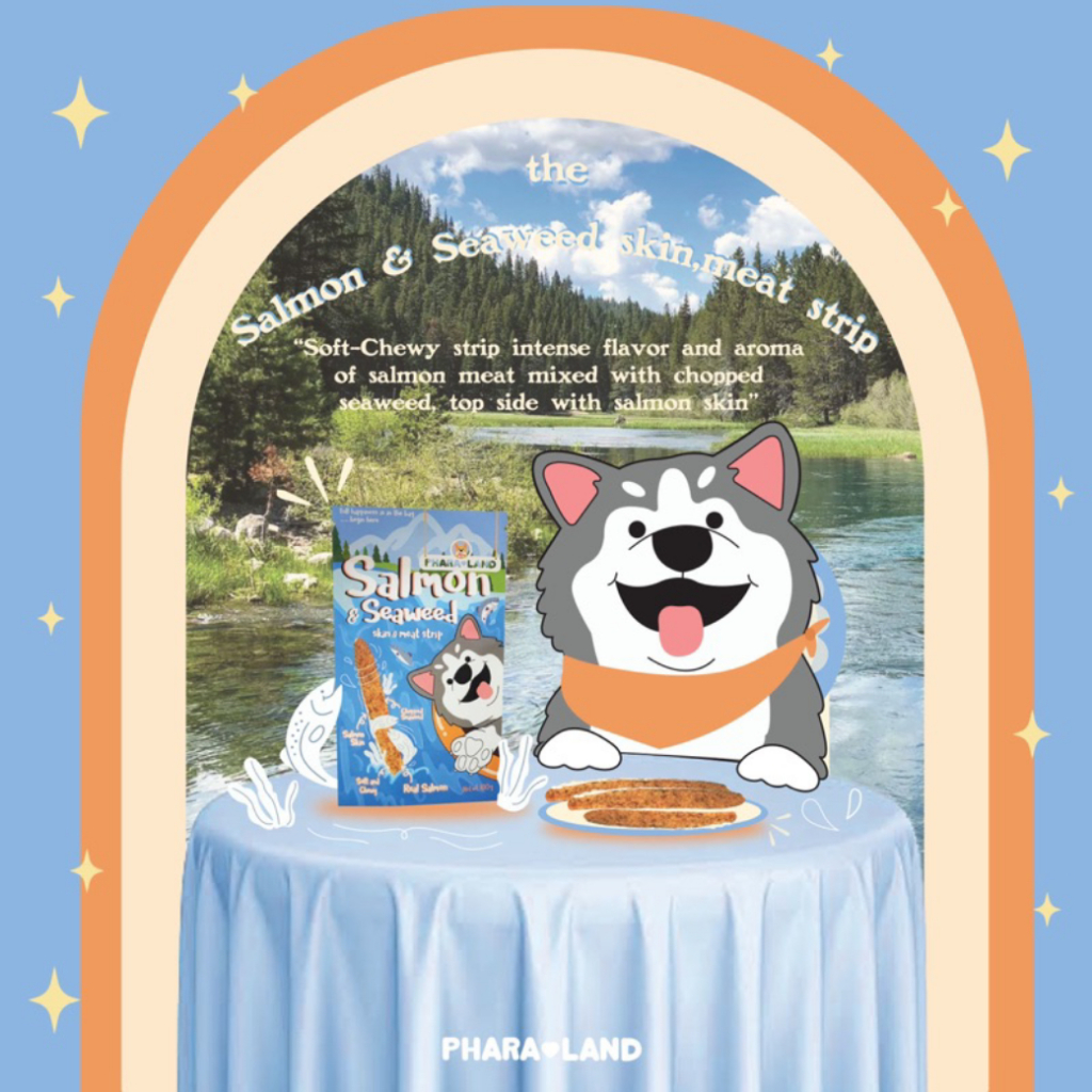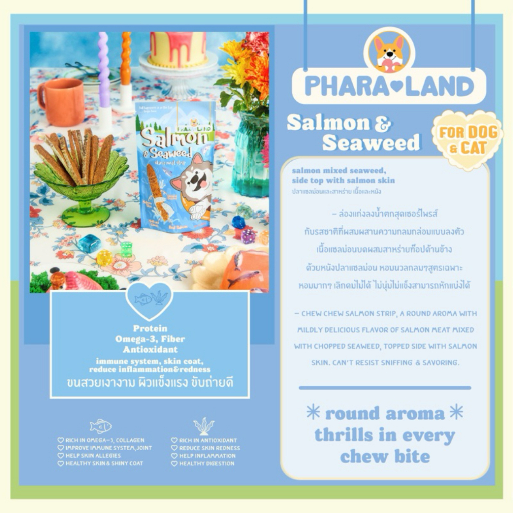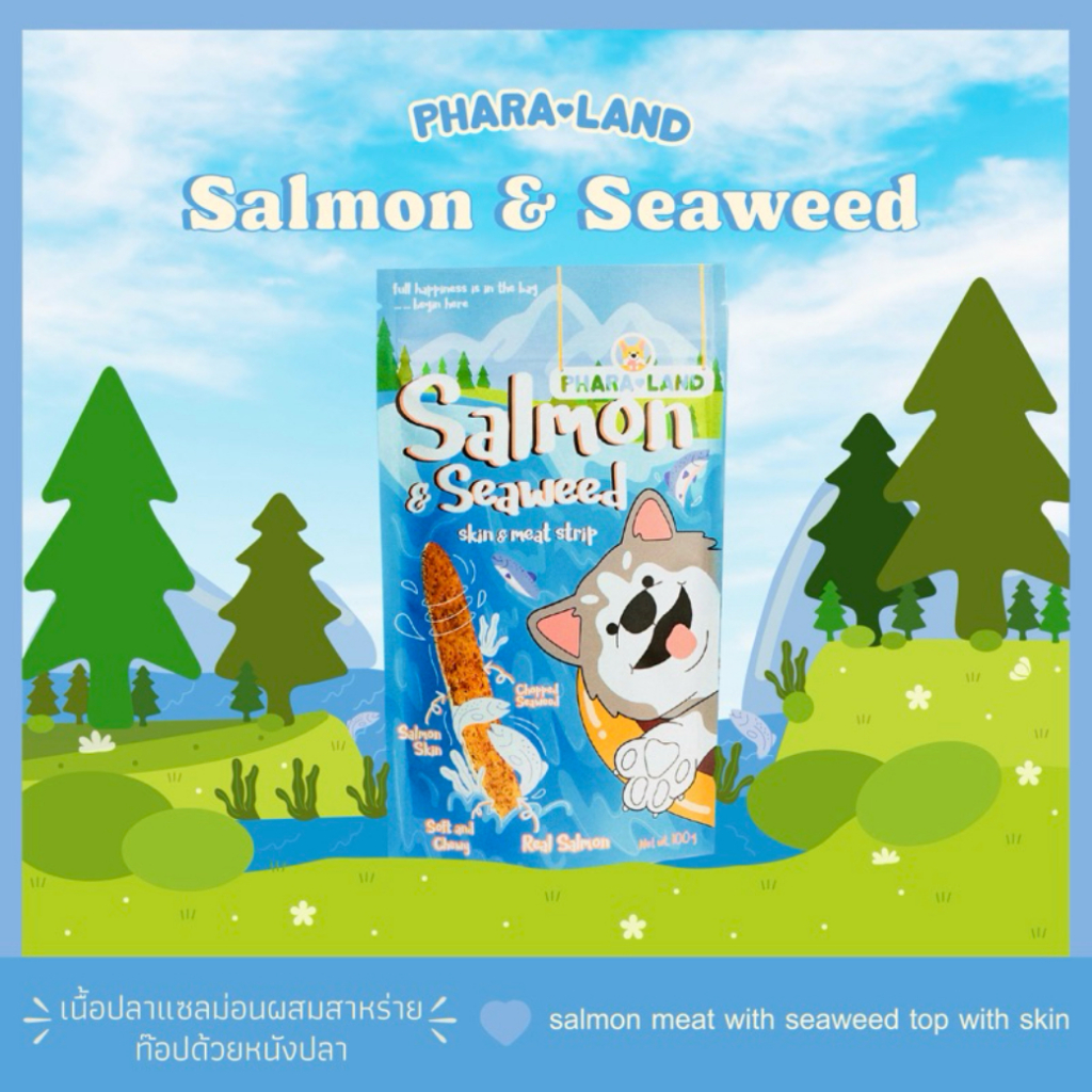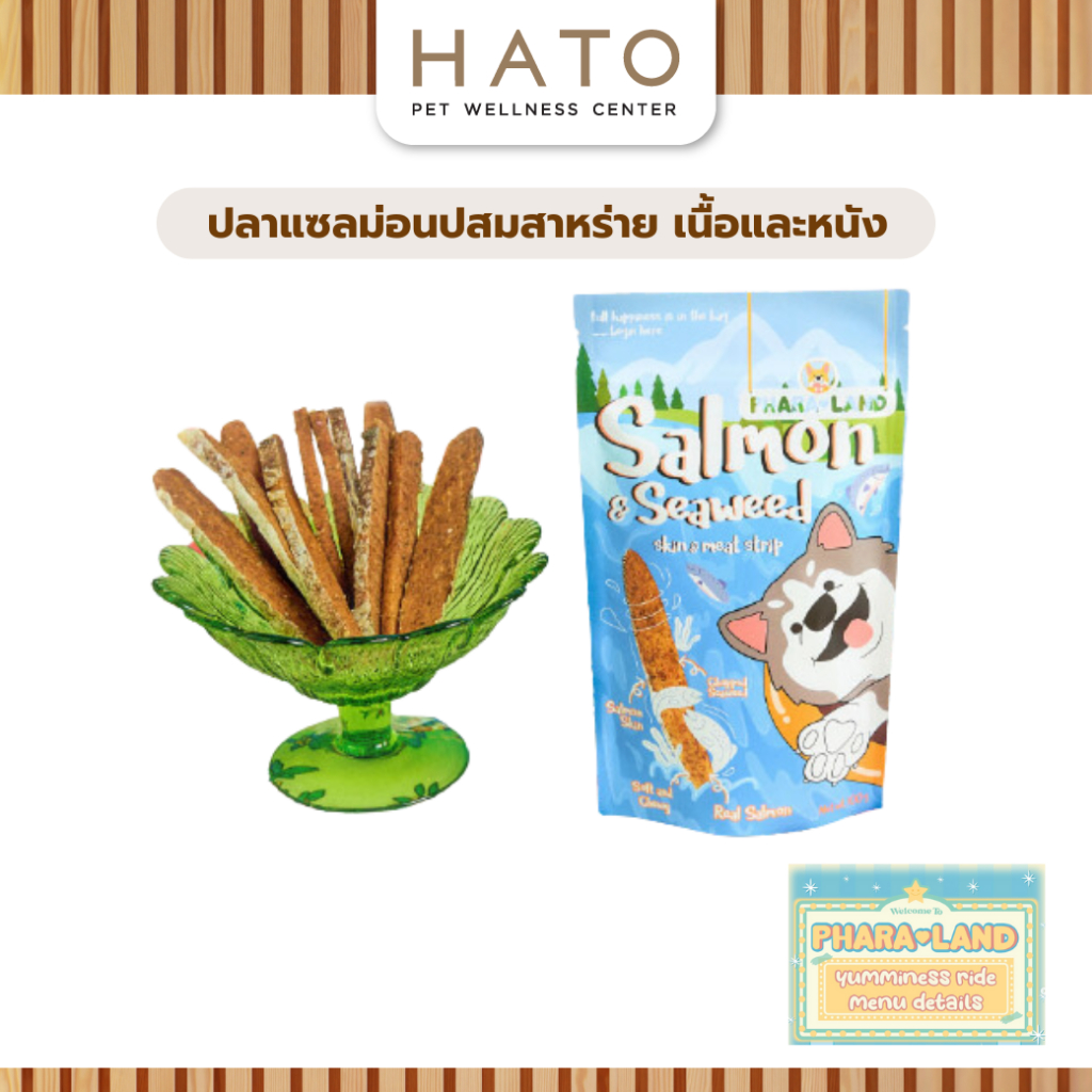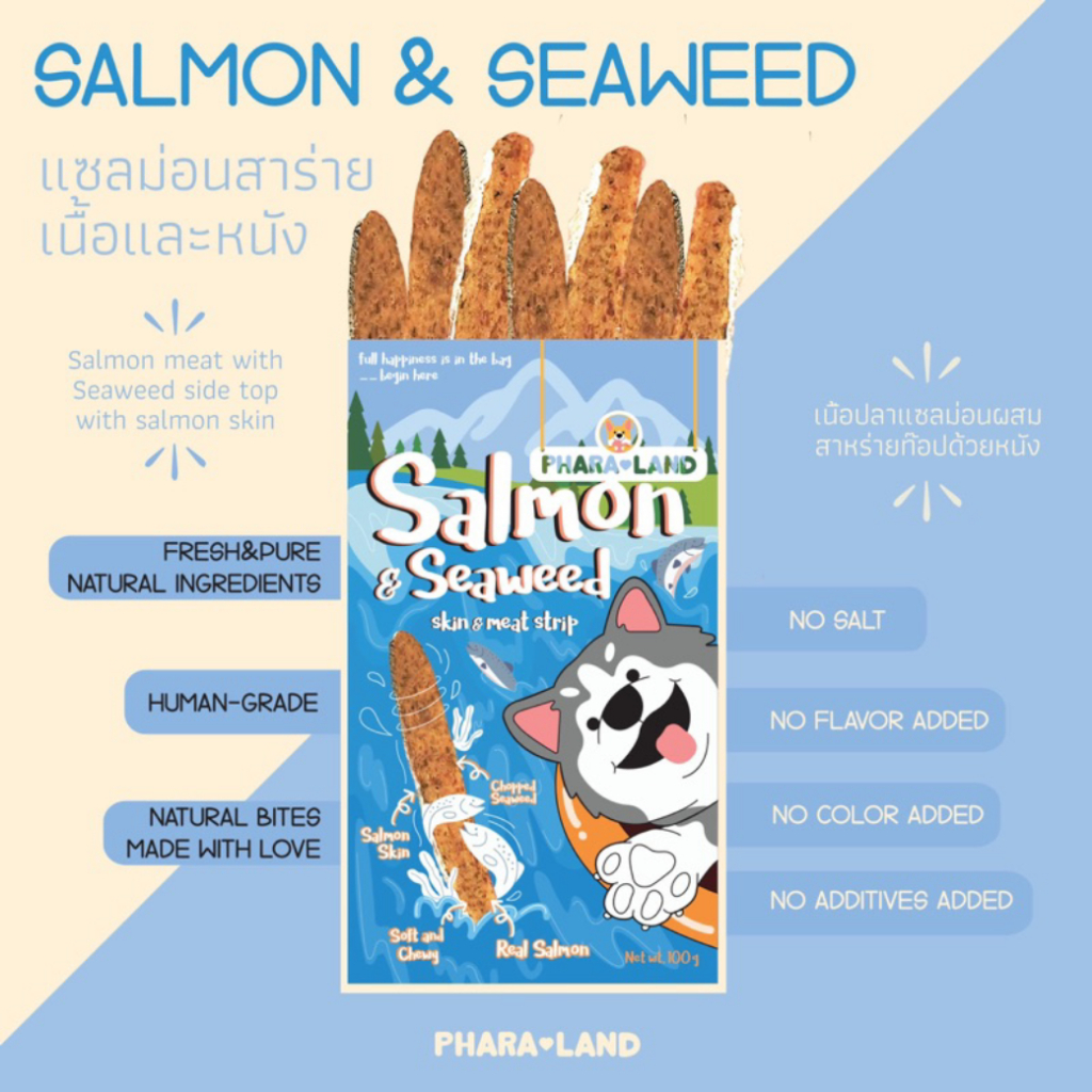 PharaLand Salmon&Seaweed skin&meat strip ภาระแลนด์ ปลาแซลม่อนปสมสาหร่าย เนื้อและหนัง 100G