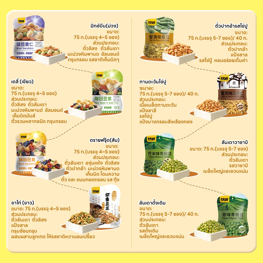 [KAM YUENS ชุด 75gx8 รสชาติ แบ่งปันได้เลย!] Ganyuanถั่ว(กานหยวน) เซ็ตถั่วมิกซ์ ของว่างนำเข้าคุณภาพ