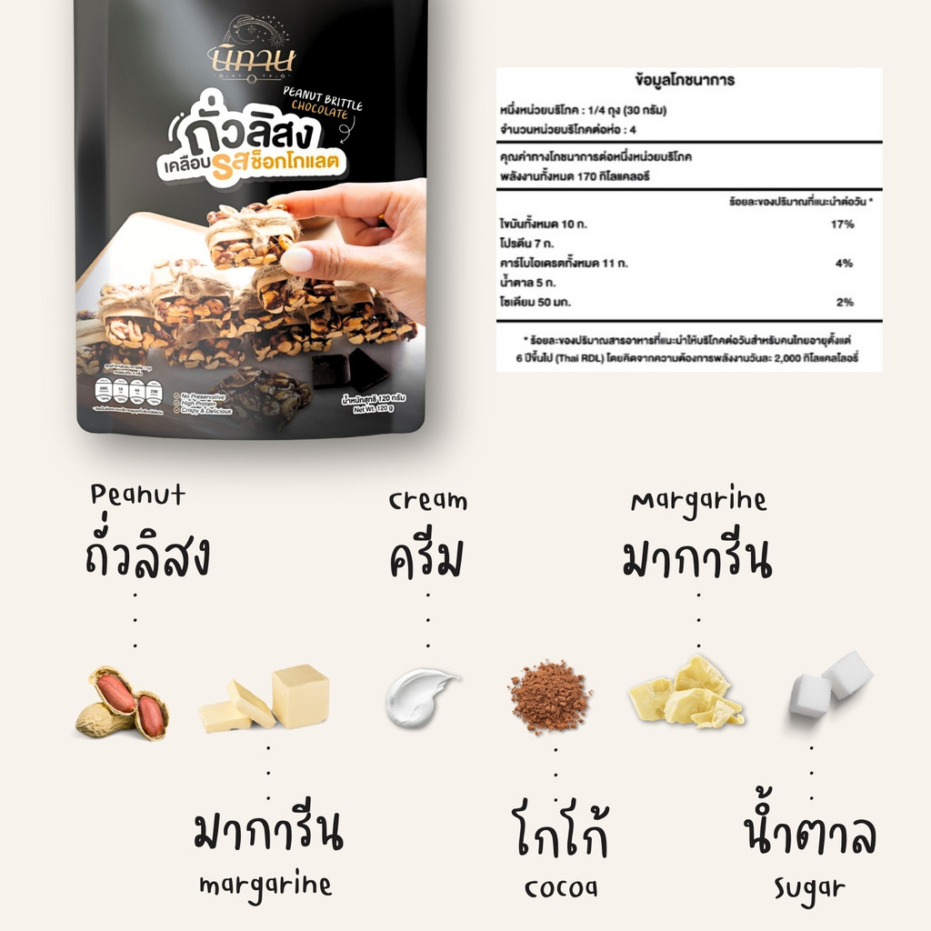 Nitan ขนมถั่วเคลือบ – [รสช็อกโกแลต] – นิทาน ขนมถั่วอบ ขนมทานเล่น ขนมของฝาก ถั่วตัด มังสวิรัติ