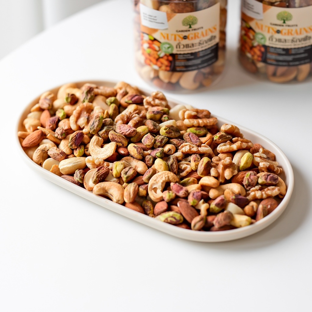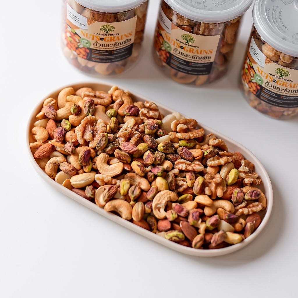 Mixed Nuts ธัญพืชรวม 5 ชนิด อบไม่ใช้น้ำมัน พิสตาชิโอ แมคคาเดเมีย วอลนัท มะม่วงหิมพานต์จัมโบ้ อัลมอนด์ (250g/500g/1 Kg)