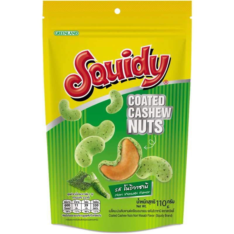 East Squidy cashew nut 110g. มะม่วงหิมพานต์อบกรอบรสปลาหมึก/ โนริวาซาบิ