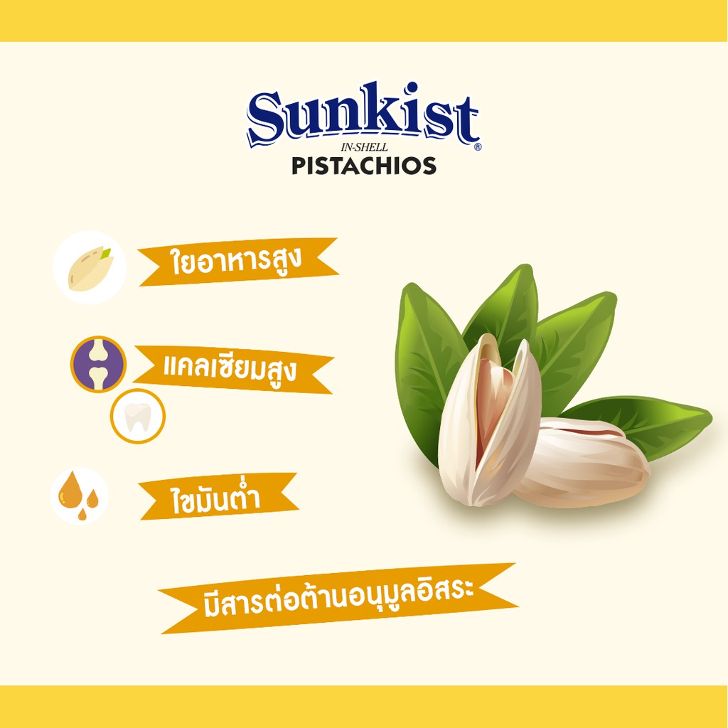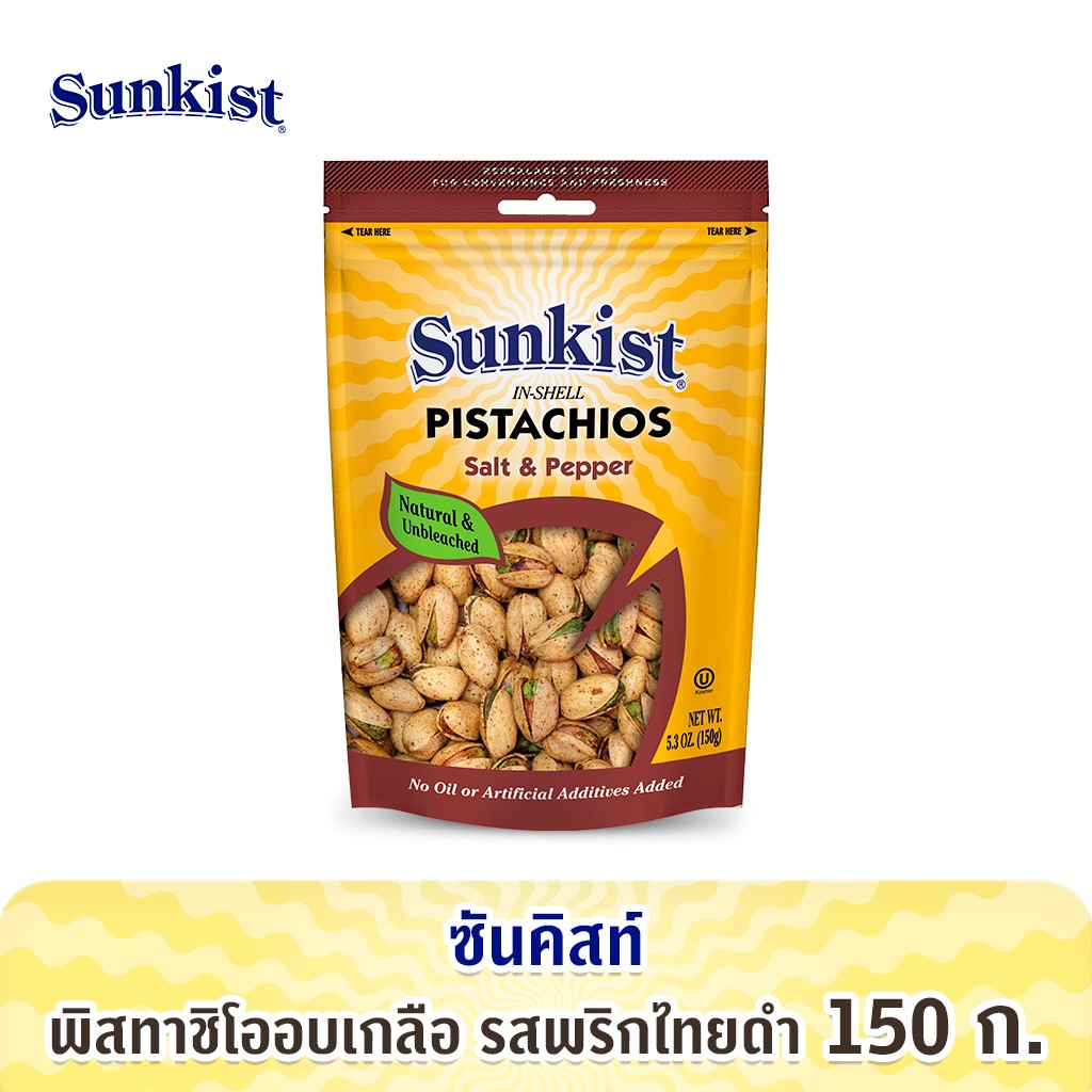 ซันคิสท์ พิสทาชิโออบเกลือรสพริกไทยดำ 150 ก. Sunkist Salt&Black Pepper Pistachios 150 g.