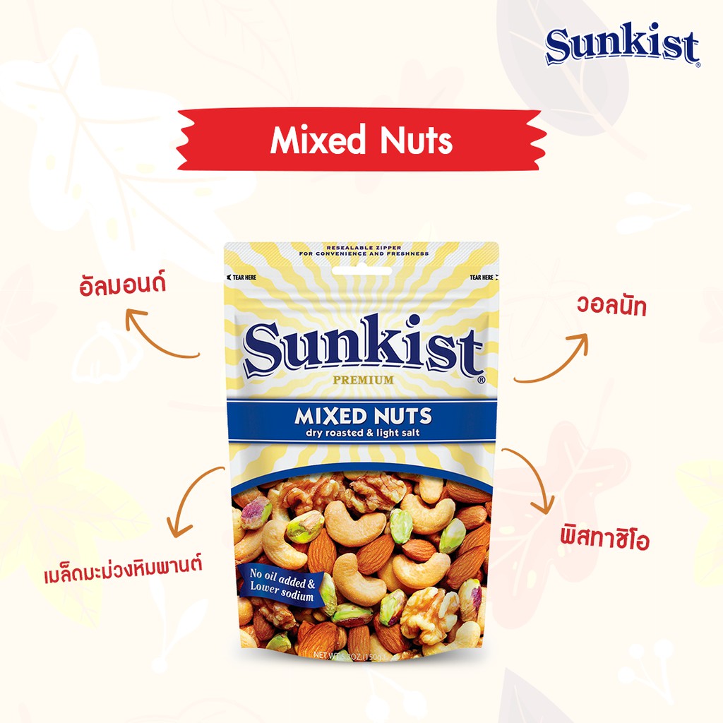 ซันคิสท์ มิกซ์นัทอบเกลือ รสเค็มน้อย 400 ก. Sunkist Dry roasted & Light salt Mixed Nuts 400 g.