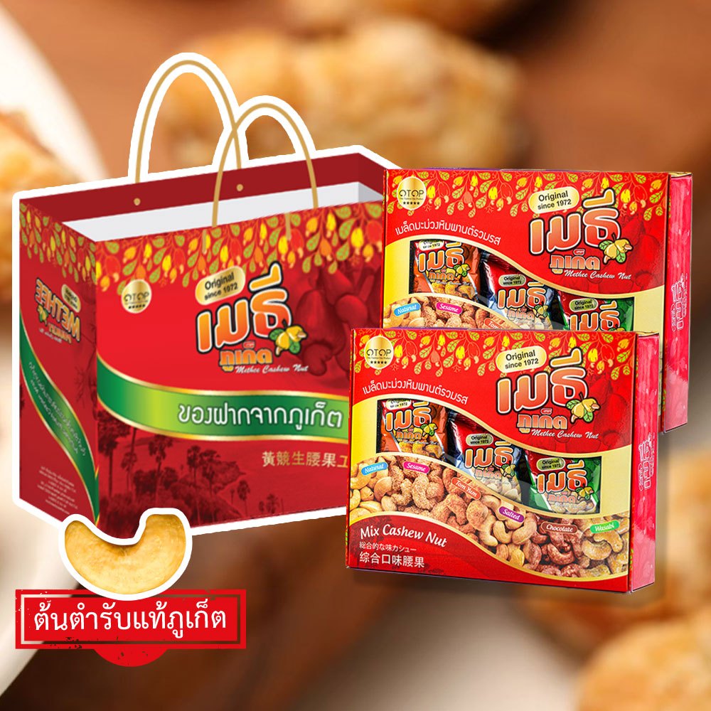 ชุดกิ๊ฟเซ็ท1 : เมล็ดมะม่วงหิมพานต์รวมรส 2 กล่อง พร้อมถุงของฝากจากภูเก็ต