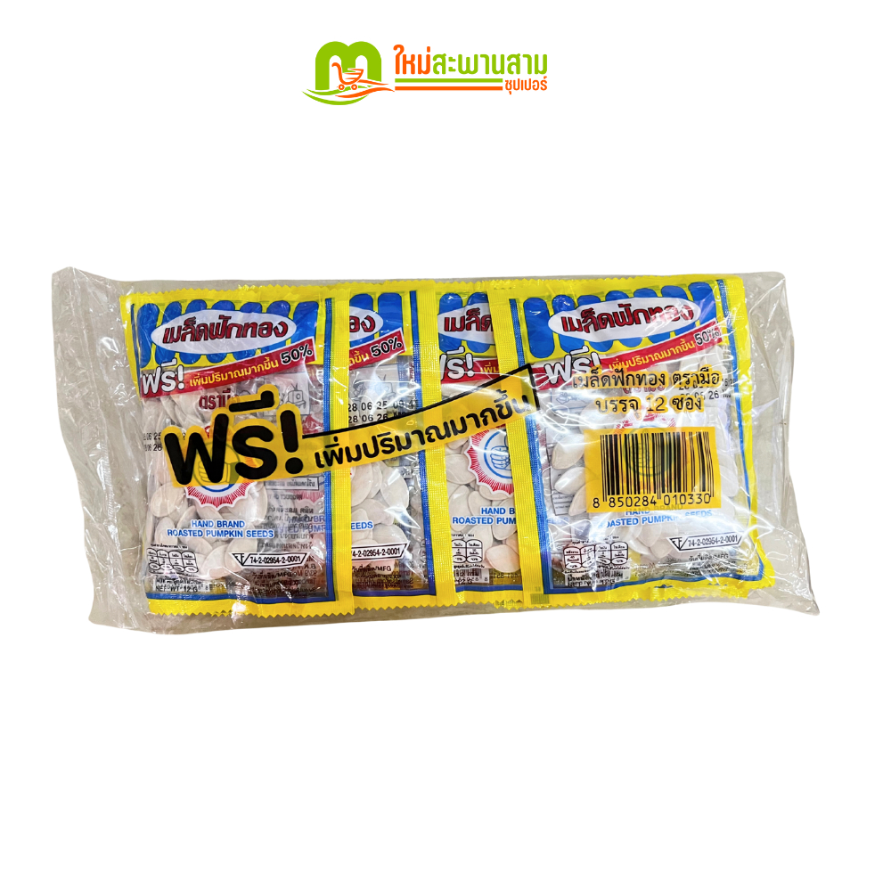 [แพ็คx1] ตรามือ เมล็ดแตงโม 15 กรัม และเมล็ดฟักทอง 12 กรัม (12ชิ้น)