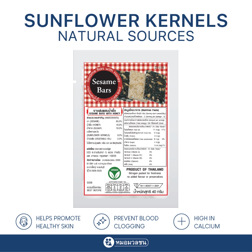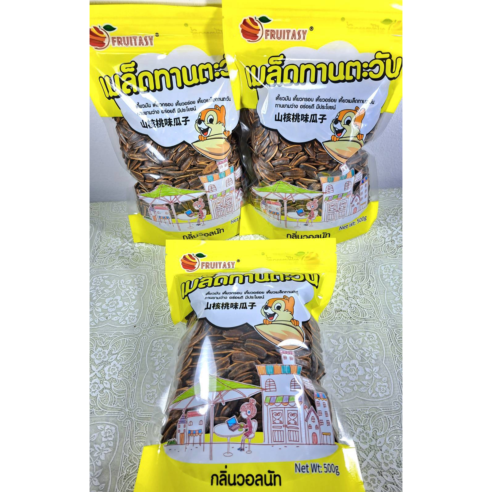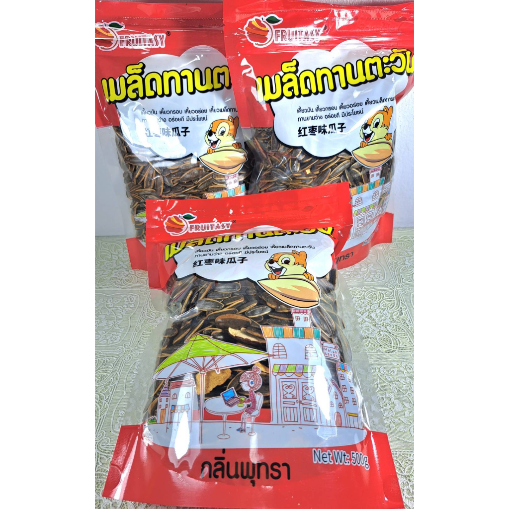 เมล็ดทานตะวันอบกลิ่นวอลนัทและพุทราจีน ขนาด 500 กรัม