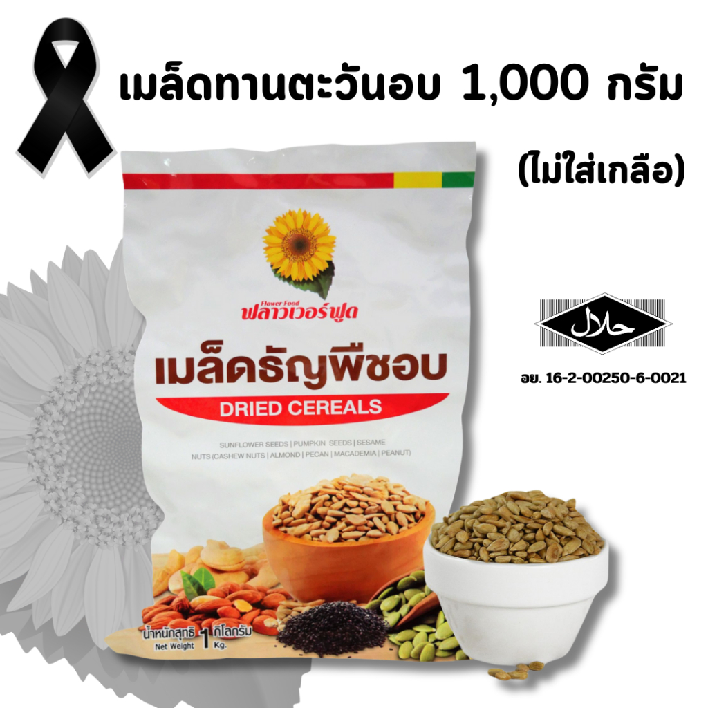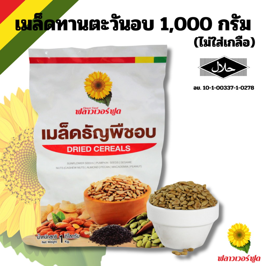 เมล็ดทานตะวันอบไม่ใส่เกลือ บรรจุ 1,000 กรัม (สินค้าไม่มีเปลือก ไม่ใส่เกลือ อบพร้อมทาน) Roasted Sunflower Kernel