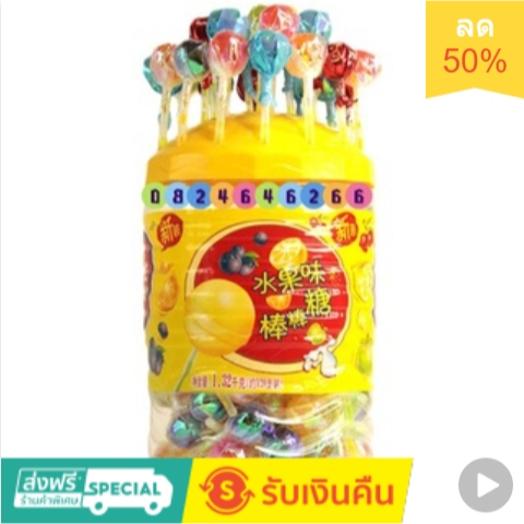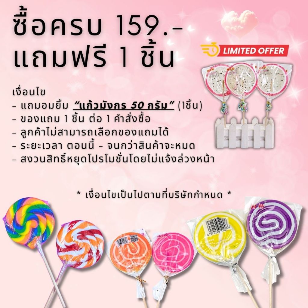 ?ซื้อครบ159ฟรี1ชิ้น?อมยิ้มสายรุ้ง อมยิ้มผลไม้ Rainbow Candy Lollipop อมยิ้มขนาดใหญ่ มีหลายขนาด 30-80g. ลูกกวาดยักษ์