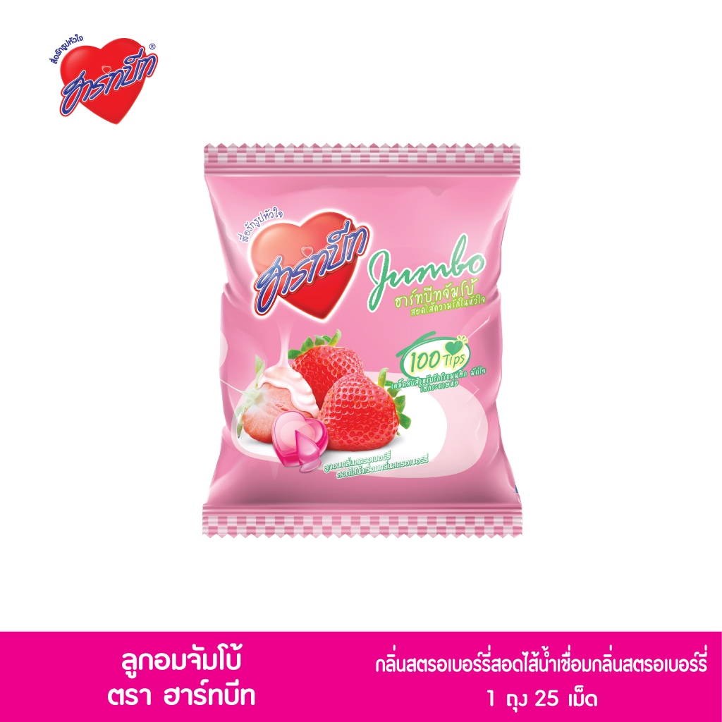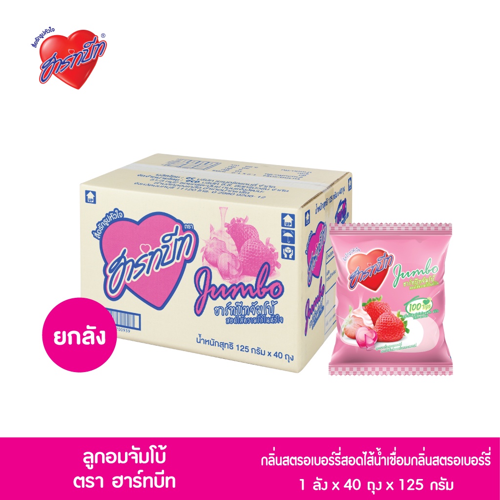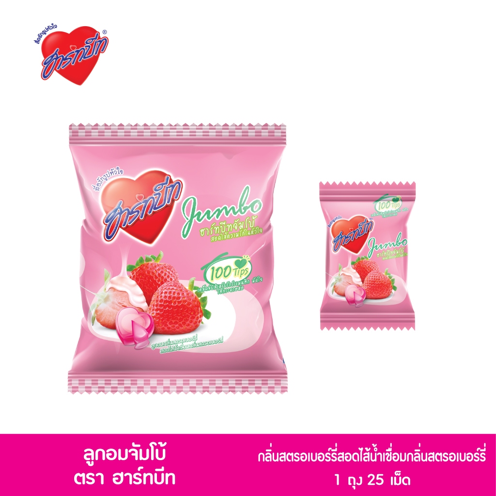 ฮาร์ทบีทจัมโบ้ สอดไส้ความรักในหัวใจ กลิ่นสตรอเบอร์รี่ สอดไส้น้ำเชื่อมกลิ่นสตรอเบอร์รี่ ขายยกลัง