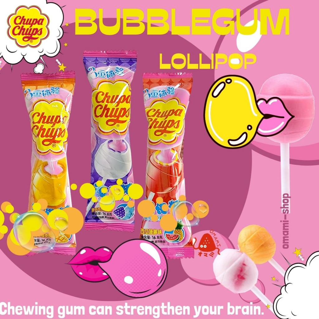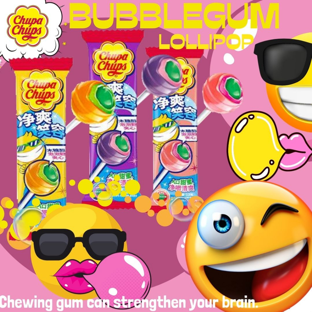 อมยิ้มสอดไส้หมากฝรั่ง ยี่ห้อจูปาจุ๊ปส์ chupa chups (1ชิ้น/12g) มีหลายรส หมากฝรั่ง อมยิ้มทานเล่น ขนมแปลกๆ