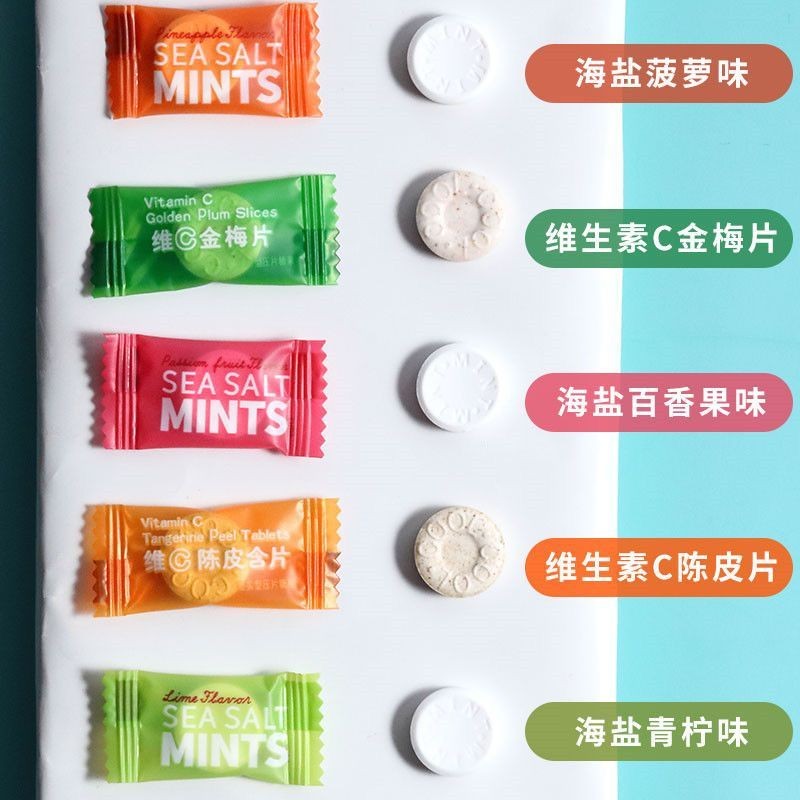 2025 วิตามินซีสไตล์ใหม่ Tangerine Peel Lozenges C เสาวรสเกลือทะเล Mint Candy Hawthorn เม็ดจํานวนมากลมหายใจสดชื่นส่วนหน้าโรงพยาบาล20250618