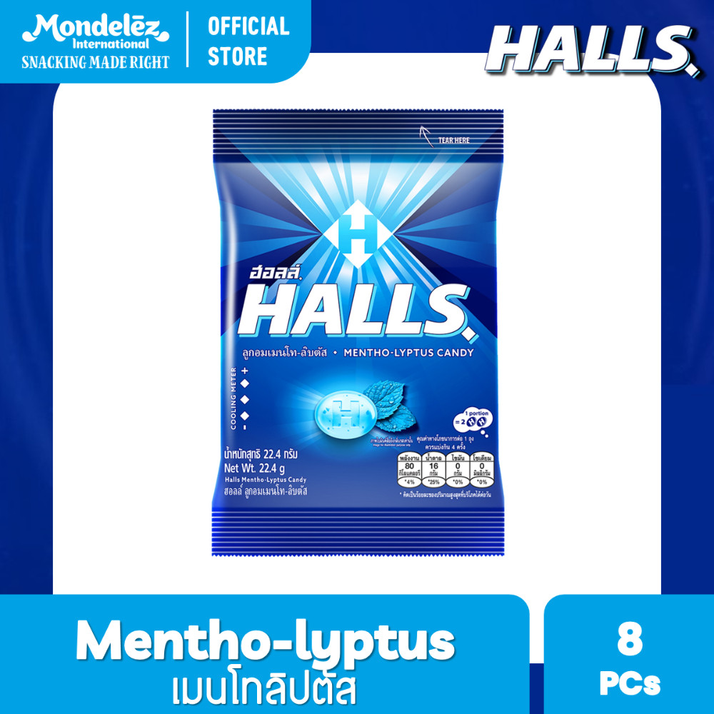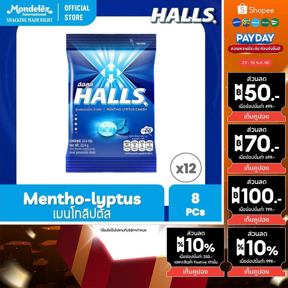 [แพ็ค 12 ถุง] Halls Mentho-Lyptus ฮอลล์ ลูกอมเมนโทลิบตัส แบบถุง 8 เม็ด (22.4g)