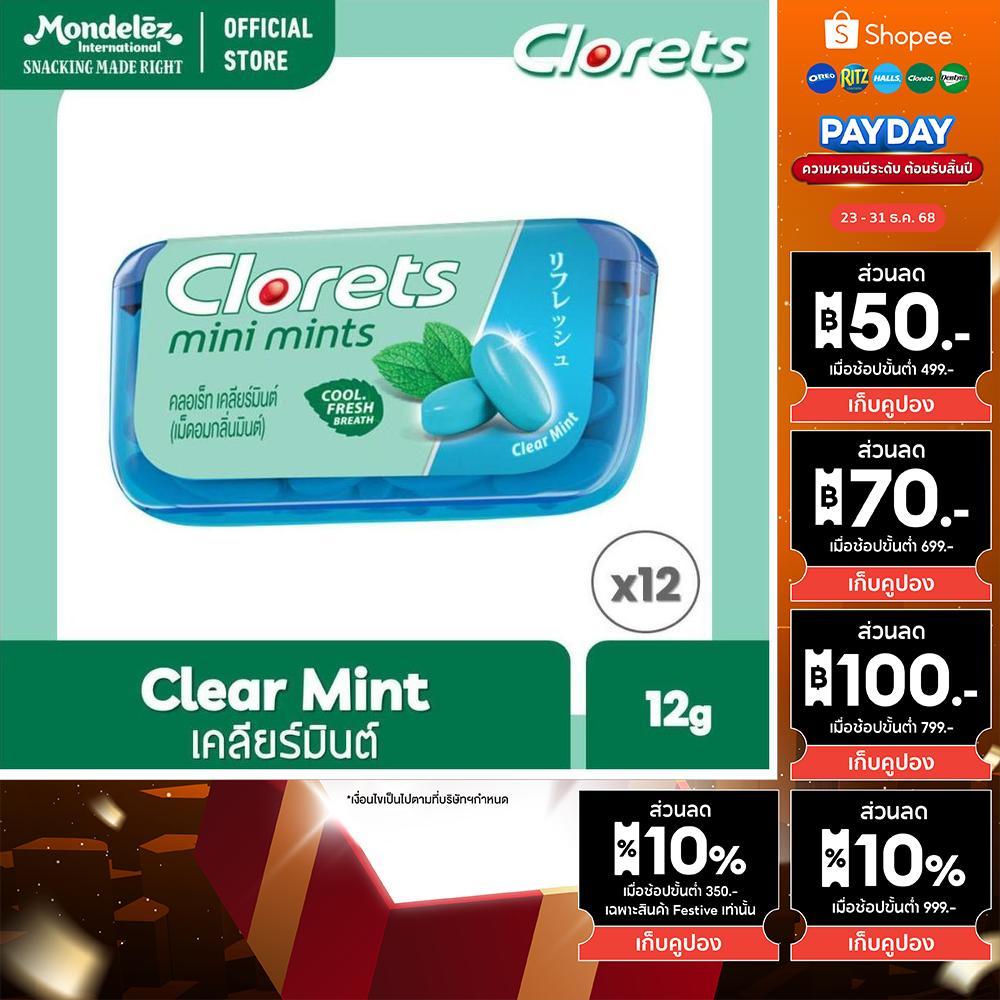[แพ็ค 12 กล่อง] Clorets Mini Mints Clear Mint มินิ มินต์ เคลียร์มินต์ 12 กรัม