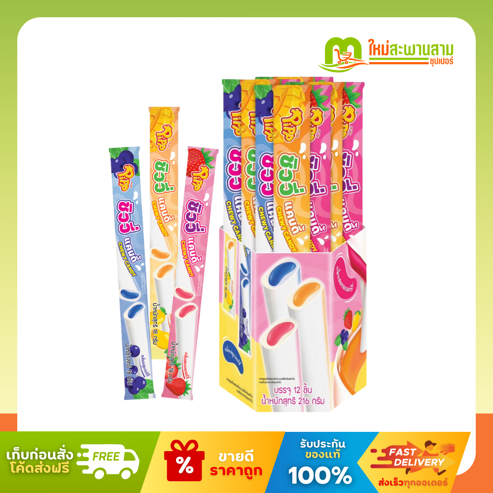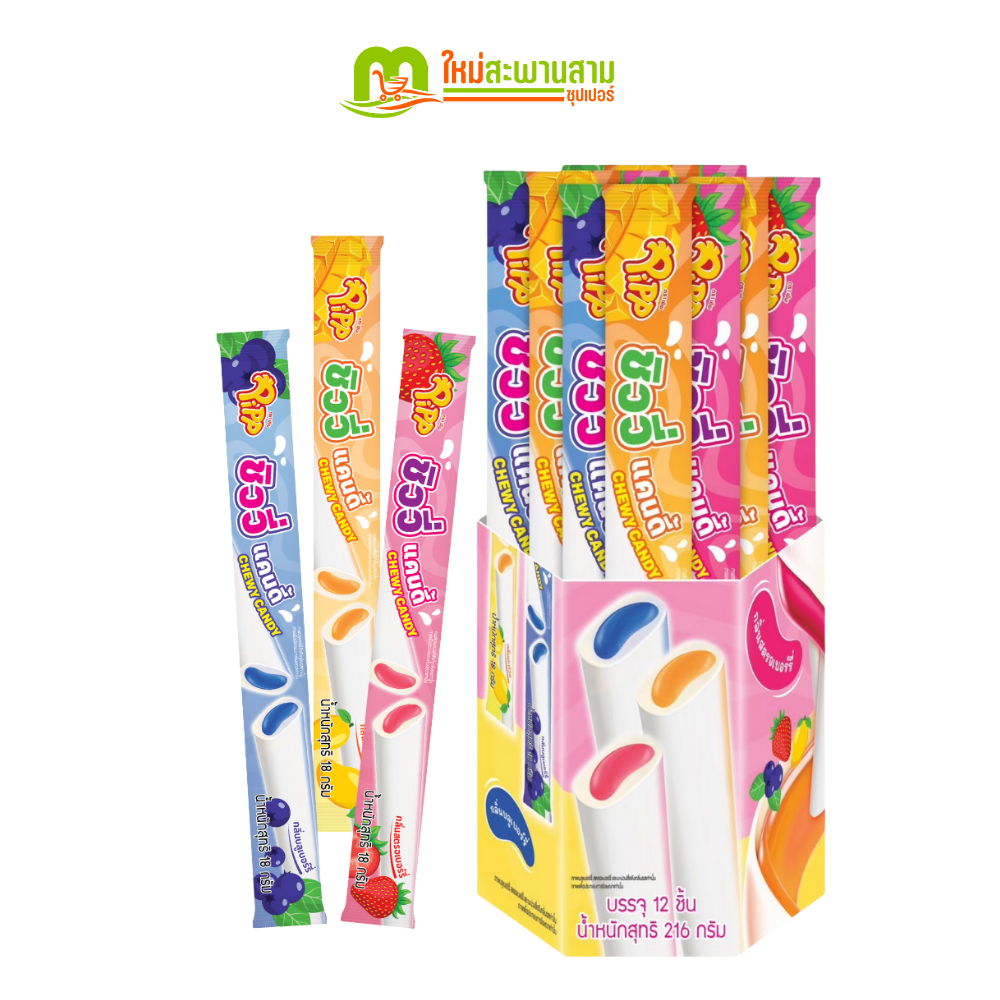[แพ็คx1] Pipp พิพ ชิววี่แคนดี้ กลิ่นผลไม้ 18 กรัม x 12 ชิ้น (216 กรัม)