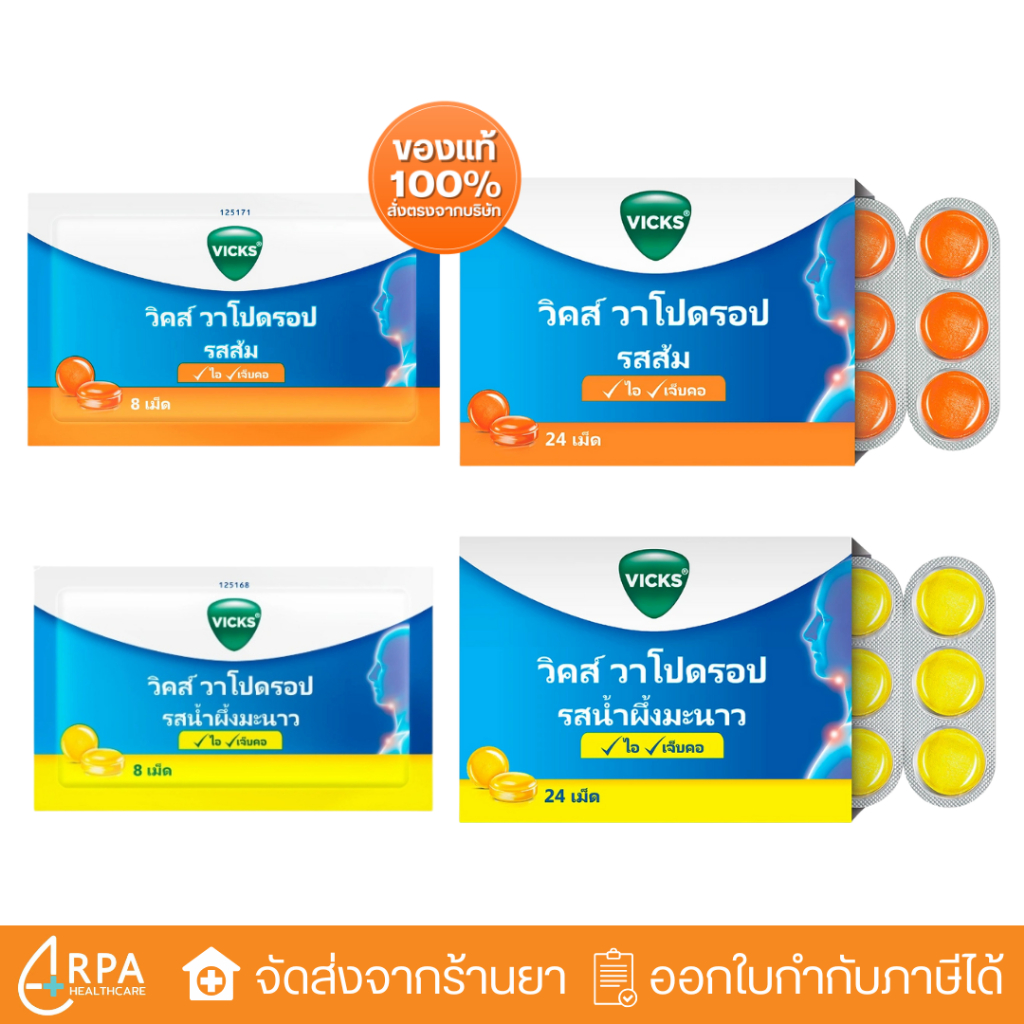 [ส่งด่วน,แท้] Vicks Vapodrops ยาอมวิคส์ วาโปดรอป (รสส้ม/น้ำผึ้งมะนาว) 8/24 เม็ด