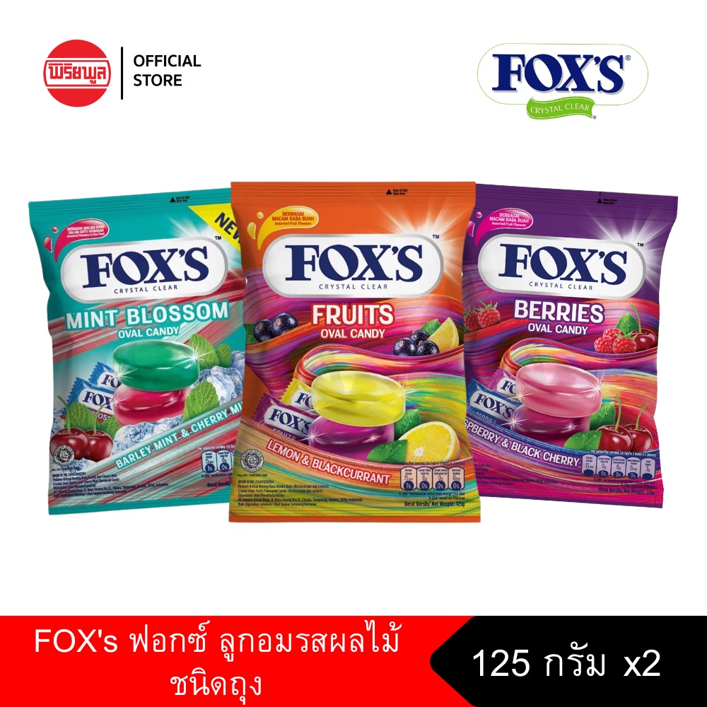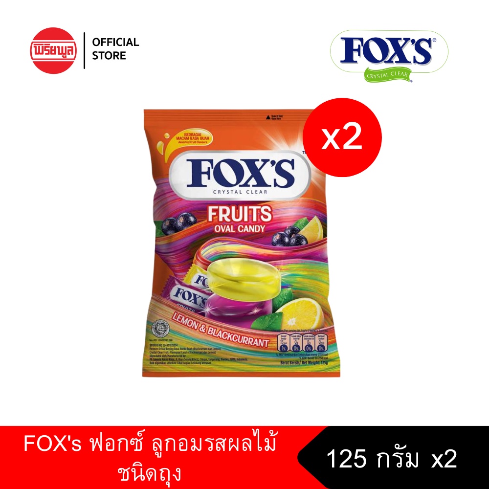 FOX’S FRUITS OVAL FLOWRAP ฟ็อกซ์ ลูกอม รสผลไม้รวม แบบถุง 125 กรัม x 2 ถุง