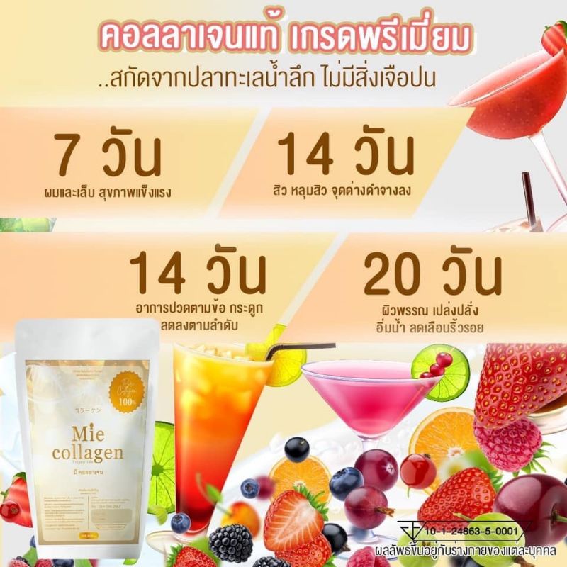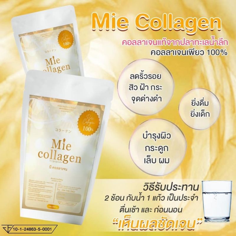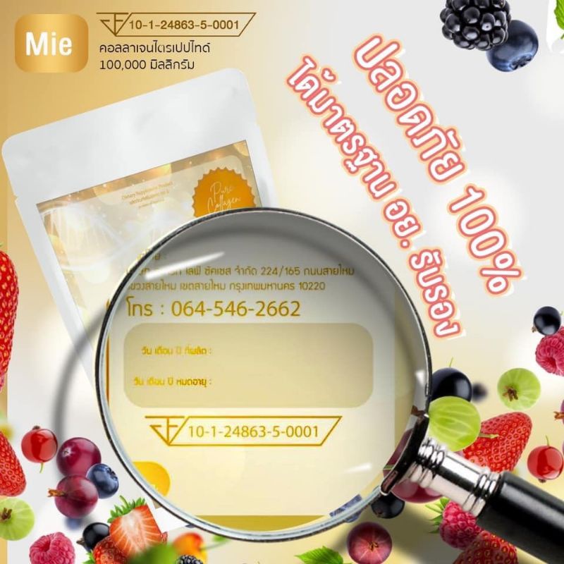 ( 1 ซอง) Mie คอลลาเจนบริสุทธิ์เพียว 100% ไตรเปปไทด์ 100000 มิลลิกรัม ละลายเร็ว ไม่คาว