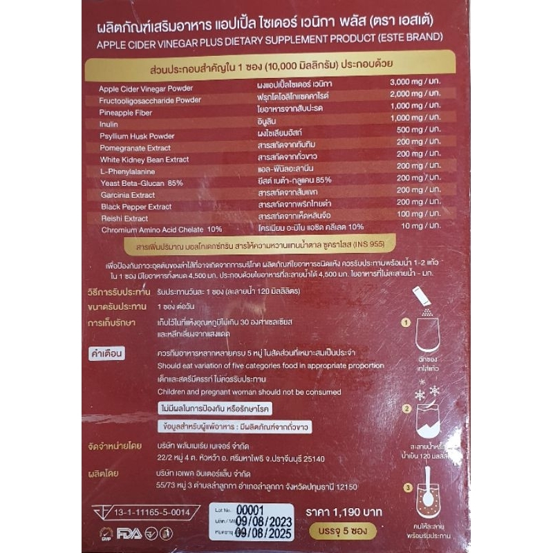 ?แบ่งขายเป็นซอง?แอปเปิ้ลไซเดอร์ ตราเอสเต้?ESTE?APPLE CIDER?