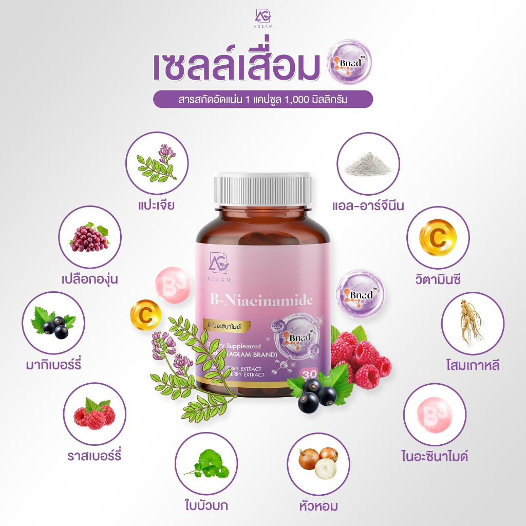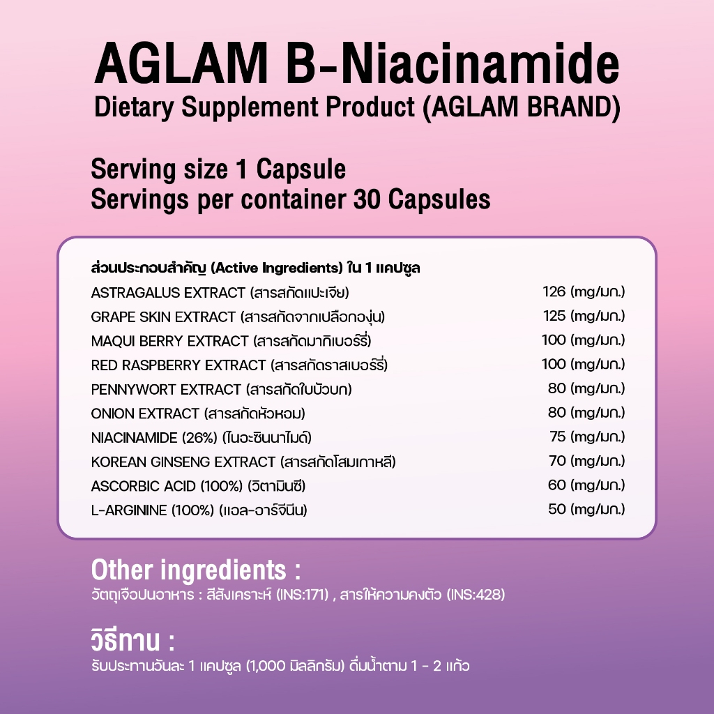 ?รับตรงบริษัท? B Niacinamide Aglam บี ไนอะซินาไมด์ อะแกรม บำรุงผิว ผิวดี อาหารเสริม วิตามิน NAD+ ผิว
