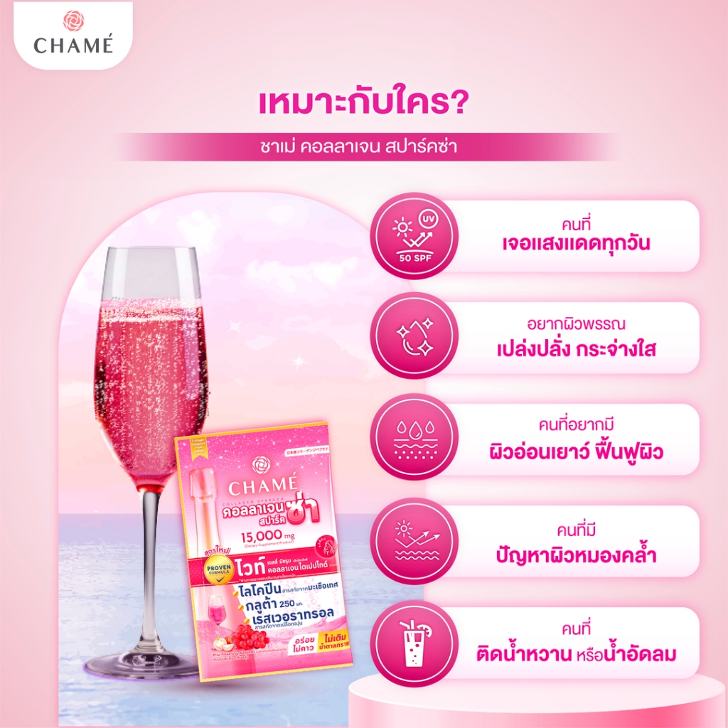 ( YEAR END SALE ) CHAME’ COLLAGEN SPARKZA 1 กล่อง (6 ซอง) คอลลาเจน สปาร์ค ซ่า