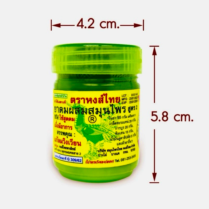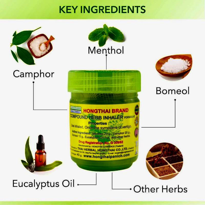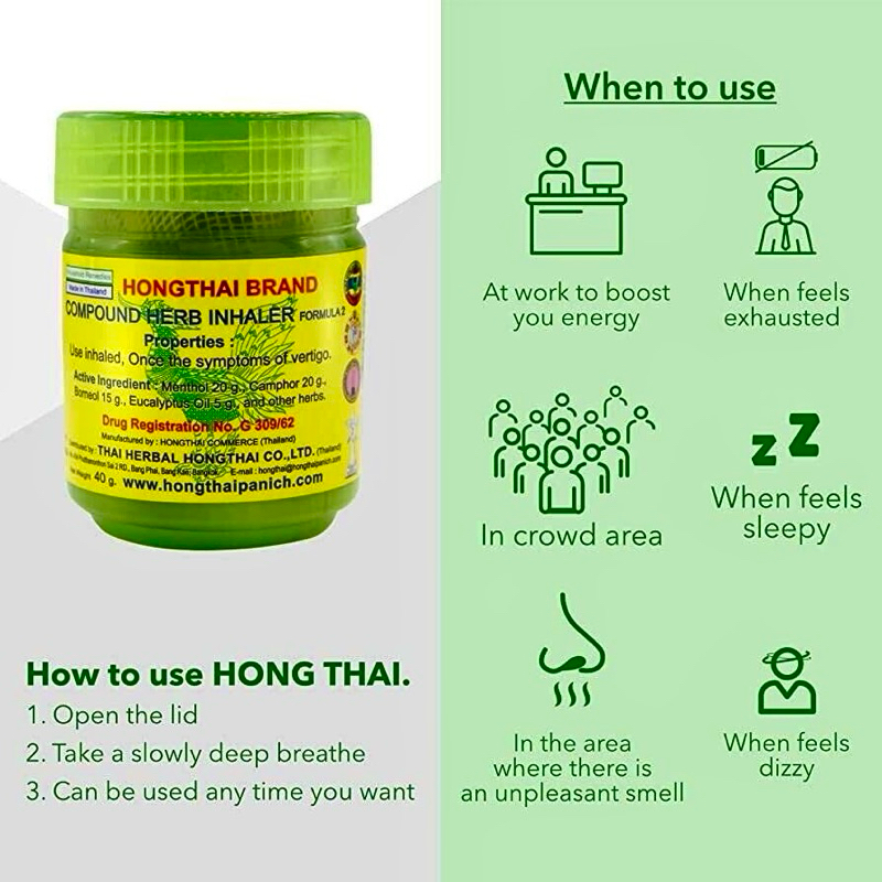 ยาดมผสมสมุนไพร ตราหงส์ไทย สูตร2 แพ็ค 6 กระปุก COMPOUND HERB INHALER HONGTHAI BRAND FORMULA 2