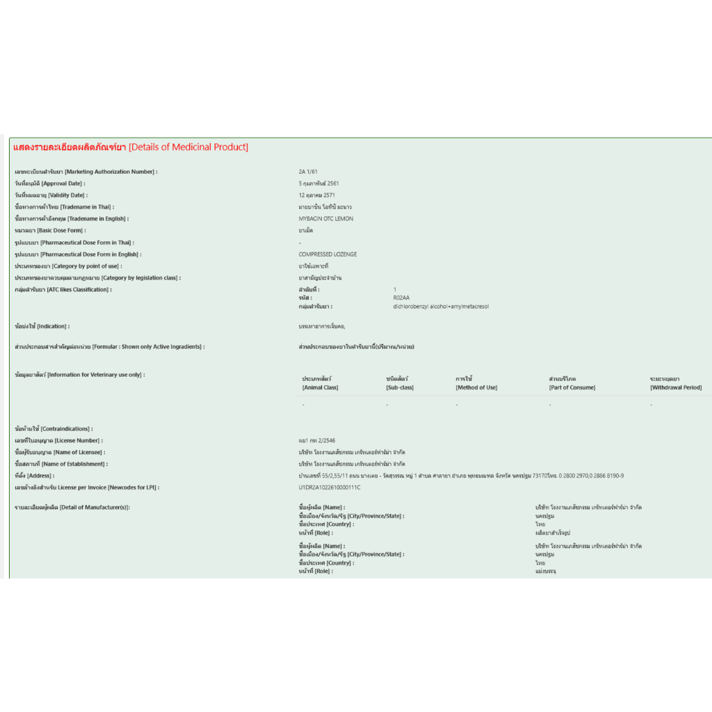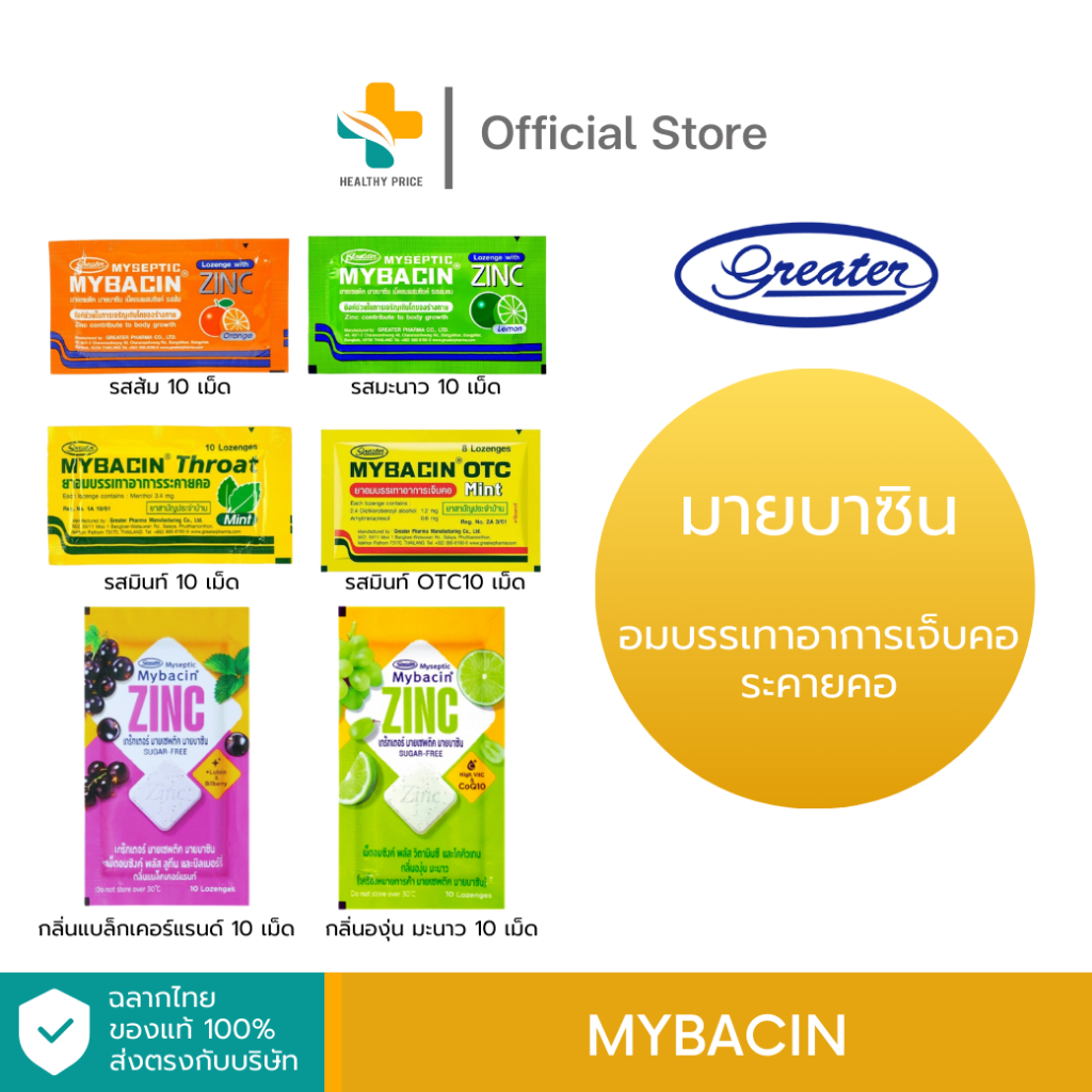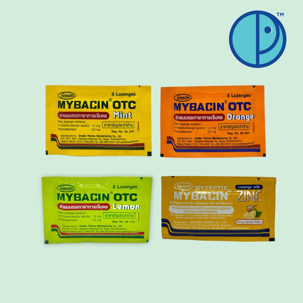 MyBacin OTC Mint/ Throat /Zinc / Zinc sugar free เม็ดอมมายบาซินโอทีซี/ โทรธ/ ซิงค์ ซิงค์ไม่มีน้ำตาล