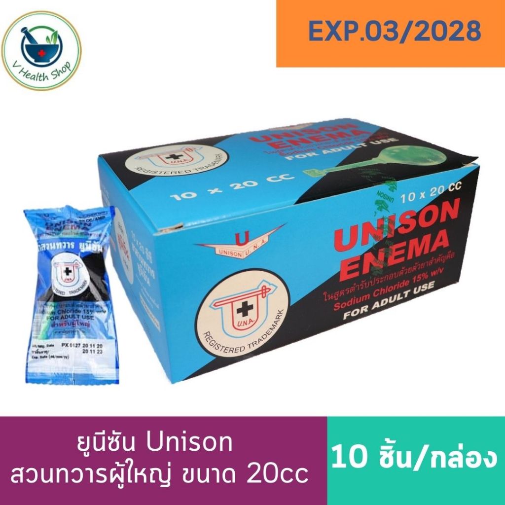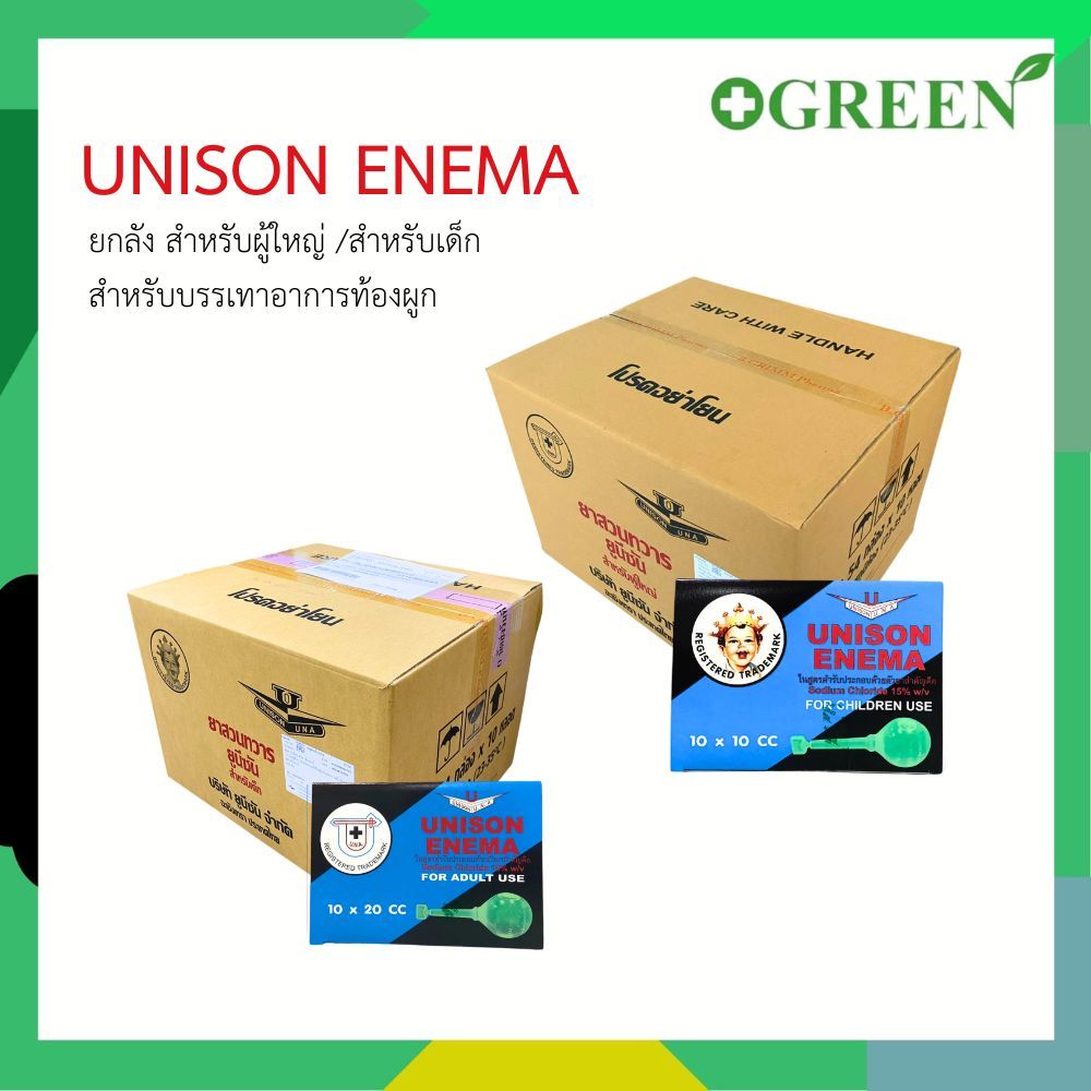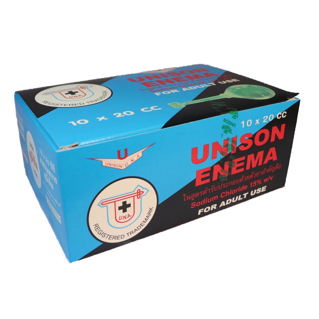 Unison Enema ยูนีซัน สำหรับสวนทวารผู้ใหญ่ บรรเทาอาการท้องผูก ถ่ายยาก ขนาด 20 CC (1กล่อง/10 ชิ้น)