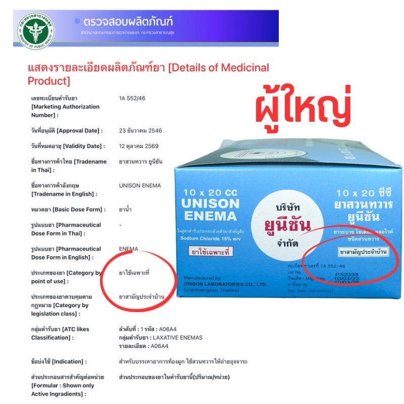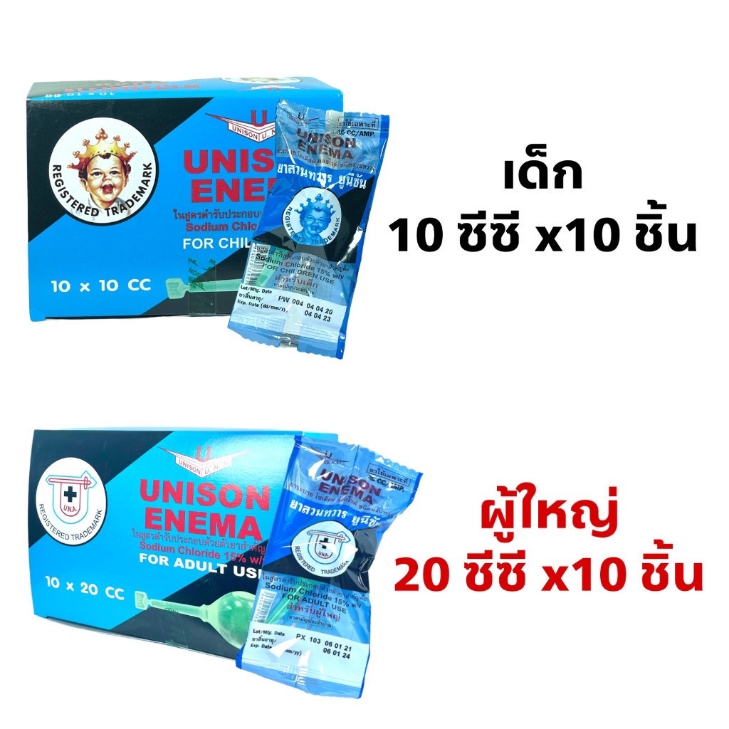 Unison ยูนิซัน ยาสวนทวาร ผู้ใหญ่ และ เด็ก 1กล่อง [บรรจุ 10ลูก] Unison enema