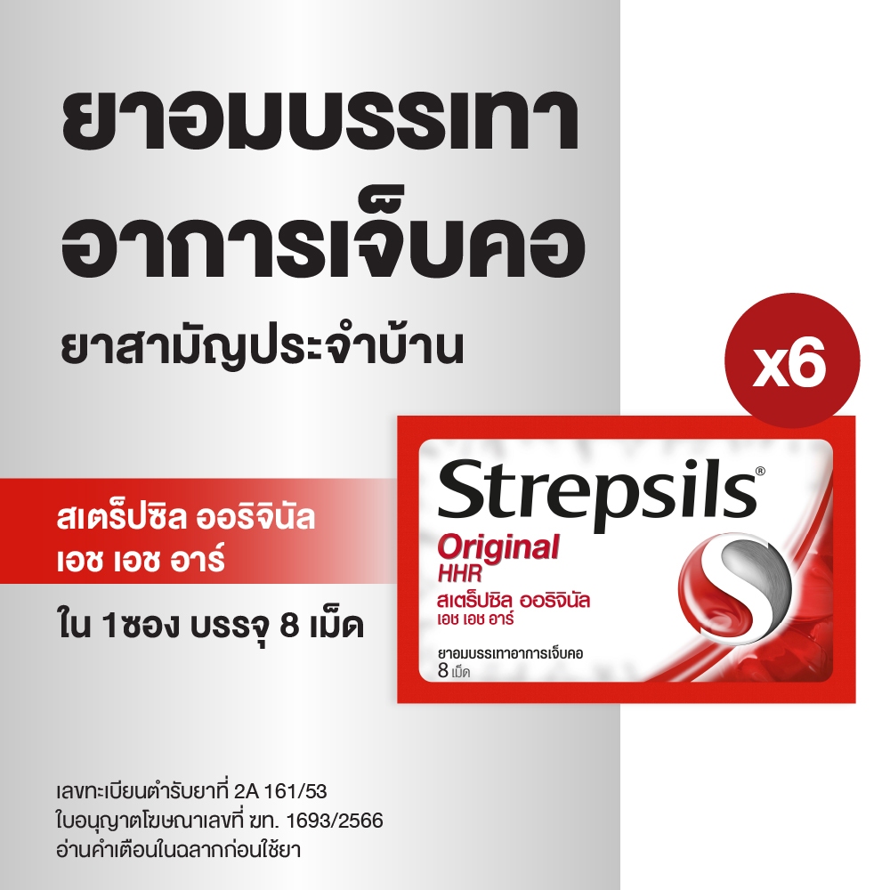 Strepsils สเตร็ปซิล ยาอม ลูกอม แก้เจ็บคอ ยาสามัญประจำบ้าน รสออริจินัล Original 1 ซอง บรรจุ 8 เม็ด x 6 ซอง