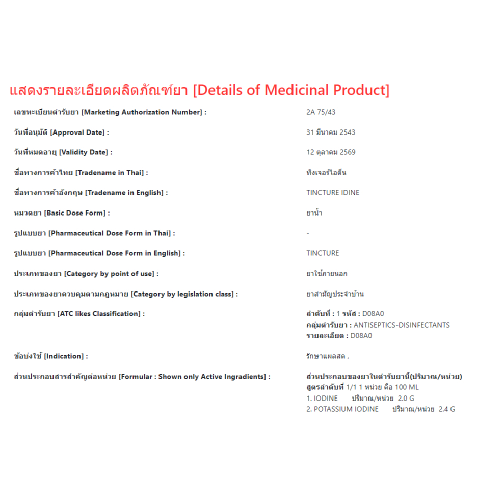 Tincture idine ทิงเจอร์ไอโอดีน วิทยาศรม 30 มล.