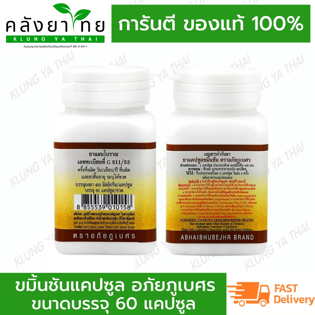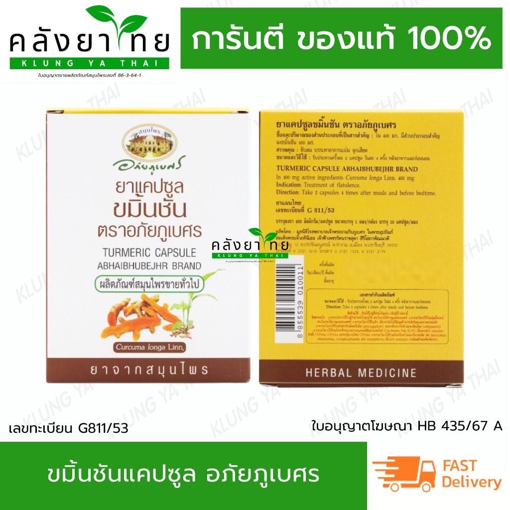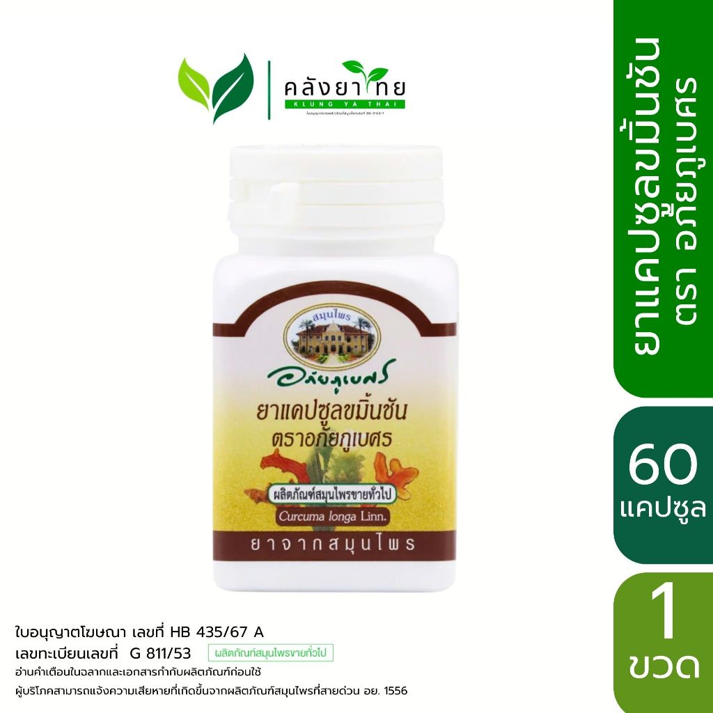 อภัยภูเบศร ยาแคปซูลขมิ้นชัน ตราอภัยภูเบศร 400 mg ขมิ้นชัน ยาสามัญประจำบ้าน