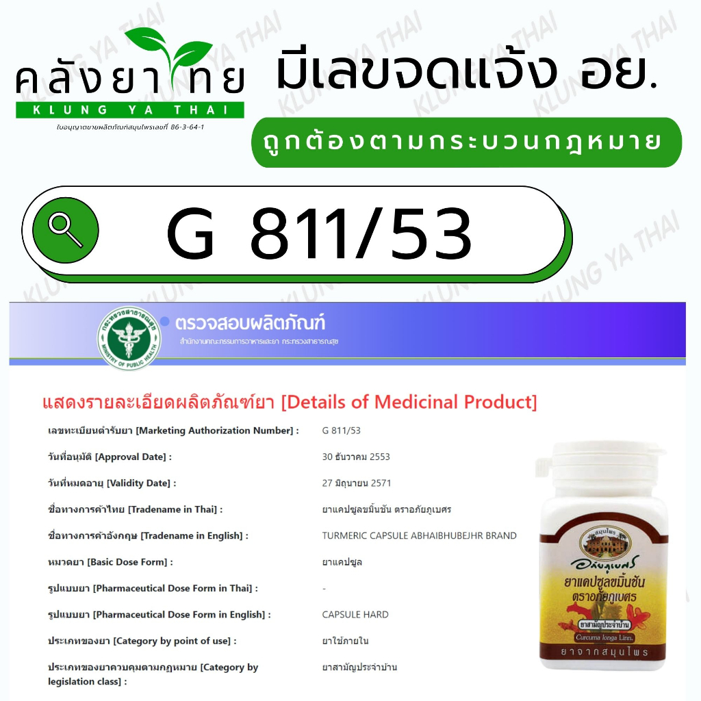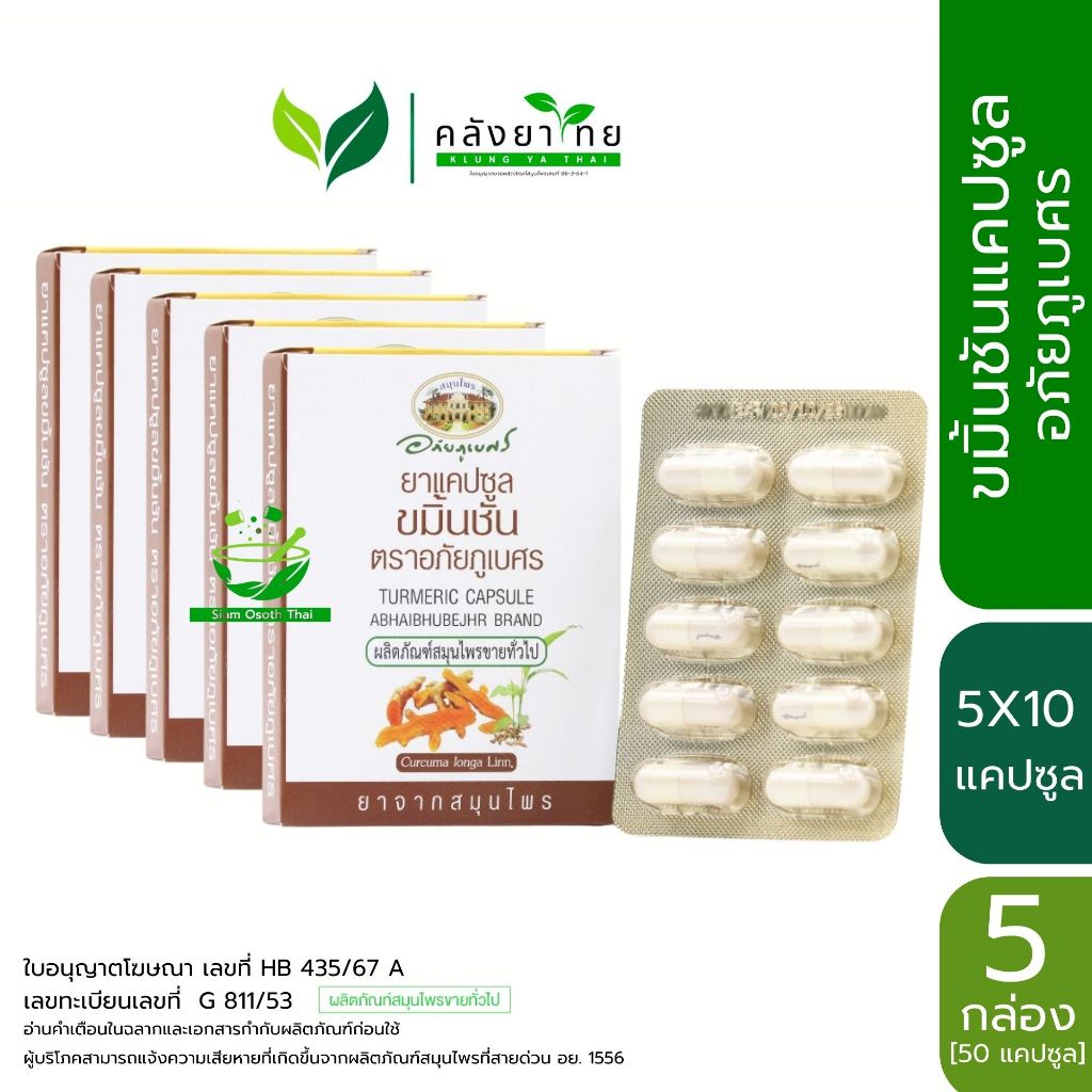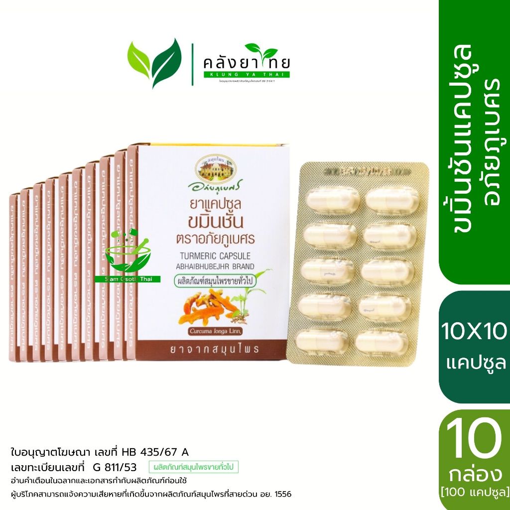 อภัยภูเบศร ยาแคปซูลขมิ้นชัน ตราอภัยภูเบศร 400 mg ขมิ้นชัน ยาสามัญประจำบ้าน