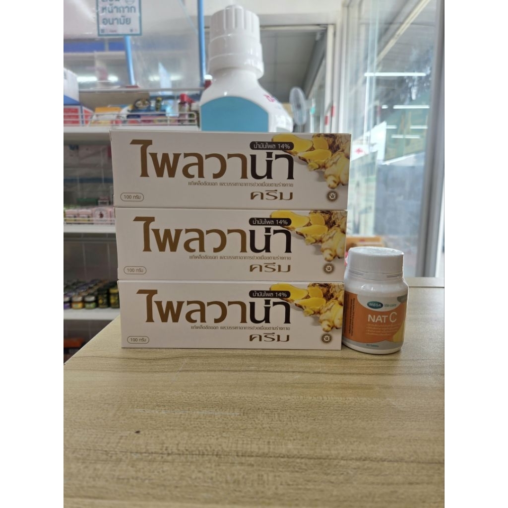 เซ็ตสุดคุ้ม ไพลวาน่าขนาด 100 g. จำนวน 3 หลอด+Mega wecare nat-c 1000 mg. 30s 1 ขวด