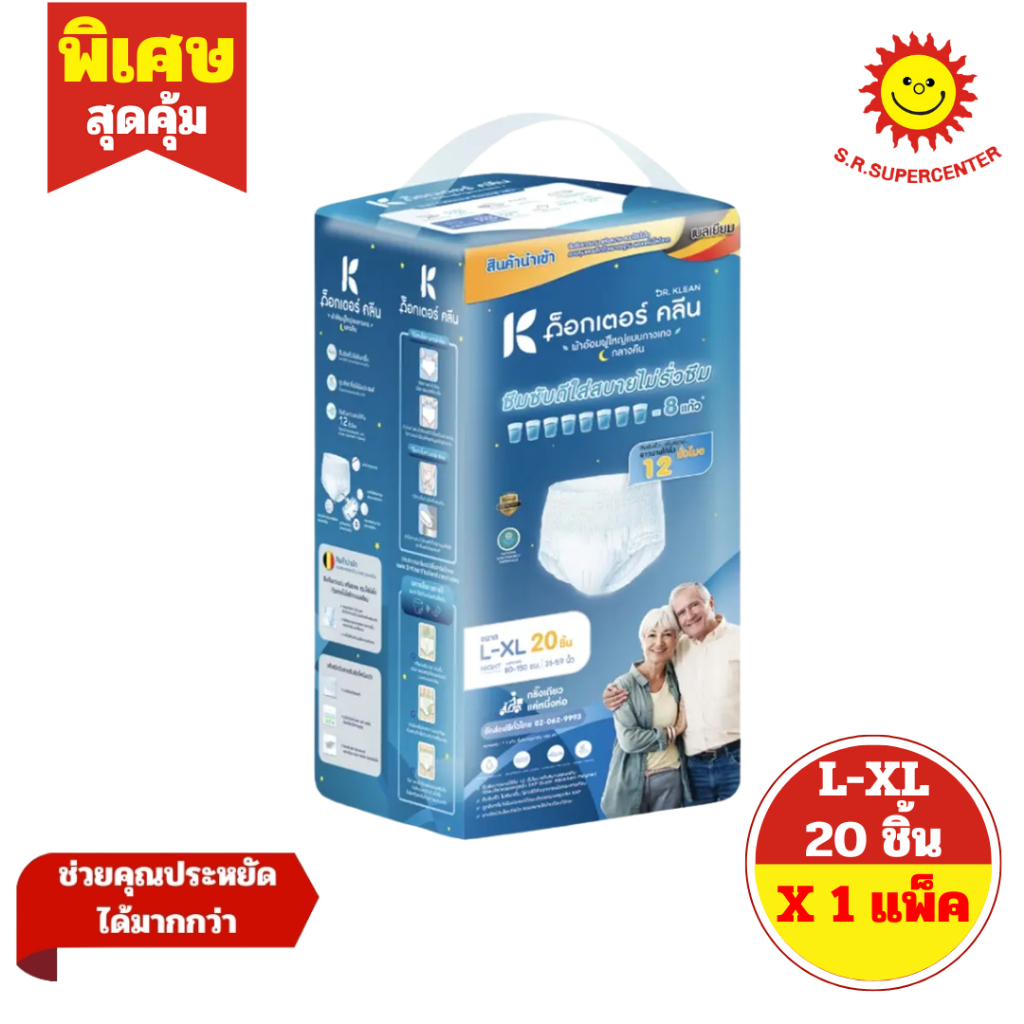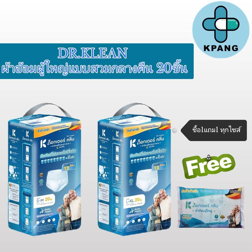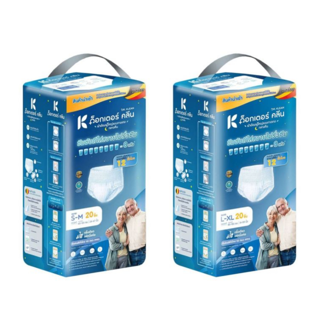 [ 1แพ็ค ] Dr.Klean ด็อกเตอร์ คลีน ผ้าอ้อมผู้ใหญ่แบบกางเกง สำหรับกลางคืน ไซส์ S-M, L-XL บรรจุ 20 ชิ้น (1แพ็ค)