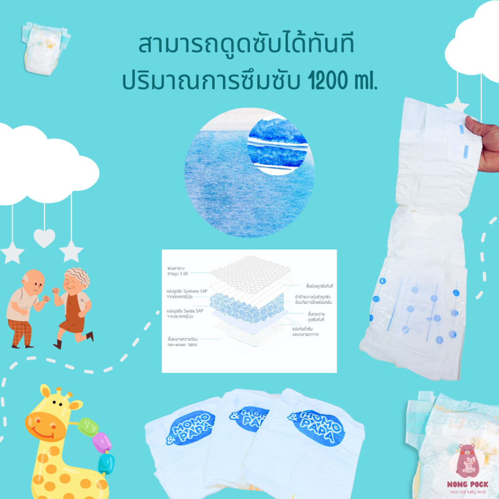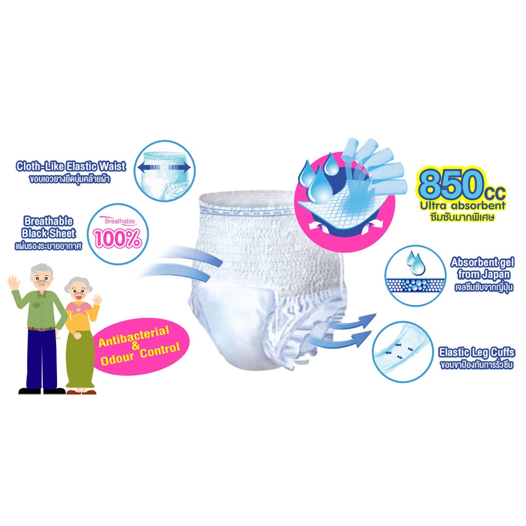 ?สะดวกสบายตลอดคืน?ผ้าอ้อมผู้ใหญ่ กางเกงผ้าอ้อมผู้ใหญ่ สูตรบางเบา มีอัตราการดูดซึมสูง 3000CC แพมเพิสผู้ใหญ่กลางคืน