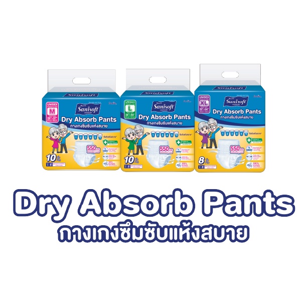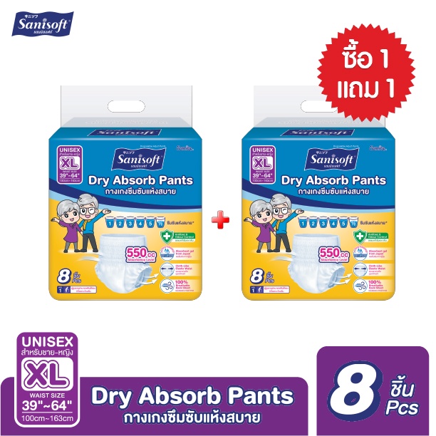 [ซื้อ1แถม1] Sanisoft / แซนนิซอฟท์ กางเกงผู้ใหญ่ซึมซับพิเศษ 850cc(ไซส์ L:34-54นิ้ว/87-137ซม.) 10s/ห่อ