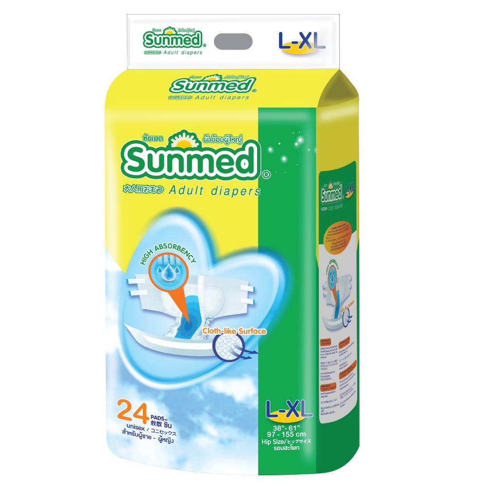 (ยกลัง 6 ห่อ) Sunmed ผ้าอ้อมผู้ใหญ่แบบเทป M-L (168ชิ้น) // L-XL (144ชิ้น)**สินค้าของแถมมีจำนวนจำกัด