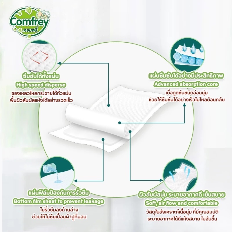 [1แพ็ค 10ชิ้น] Comfrey แผ่นรองซับผู้ใหญ่ 60cmx90cm bed sheet แผ่นซึมซับ hygienic pads