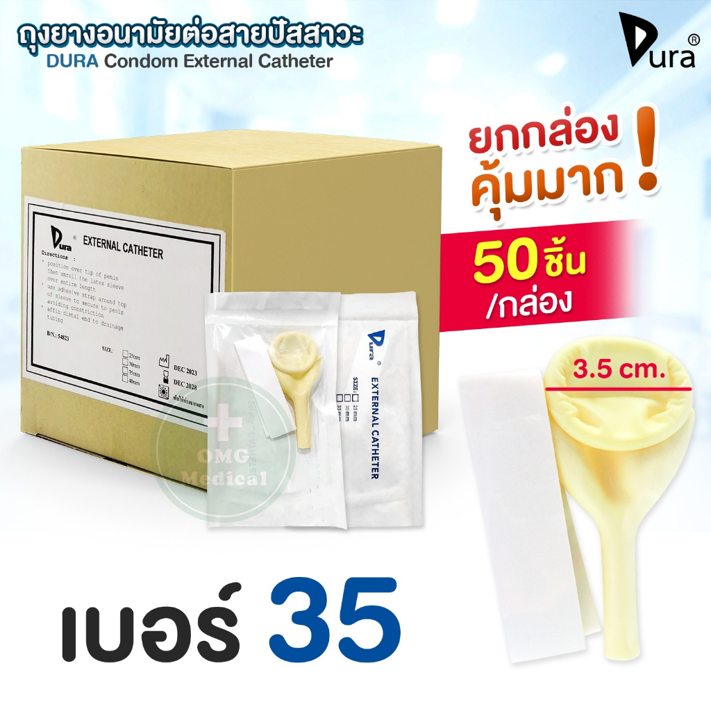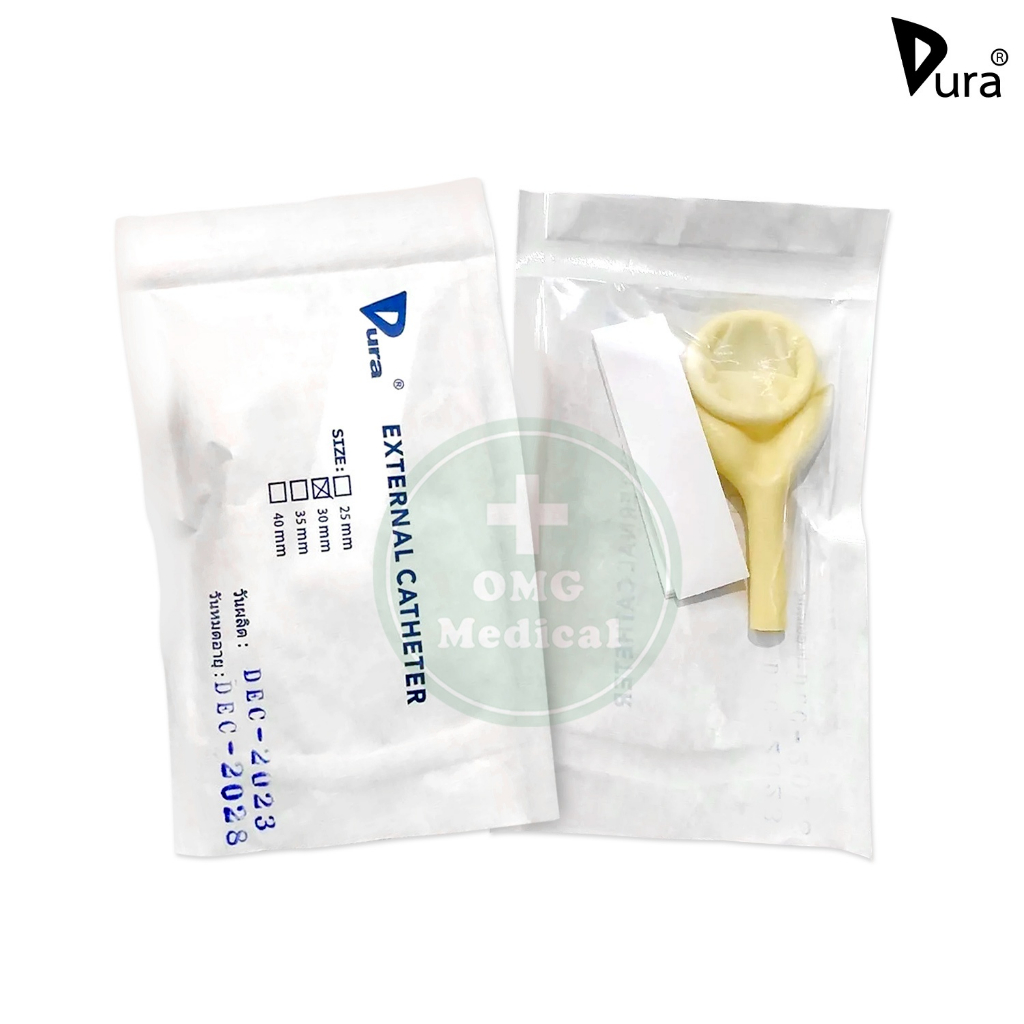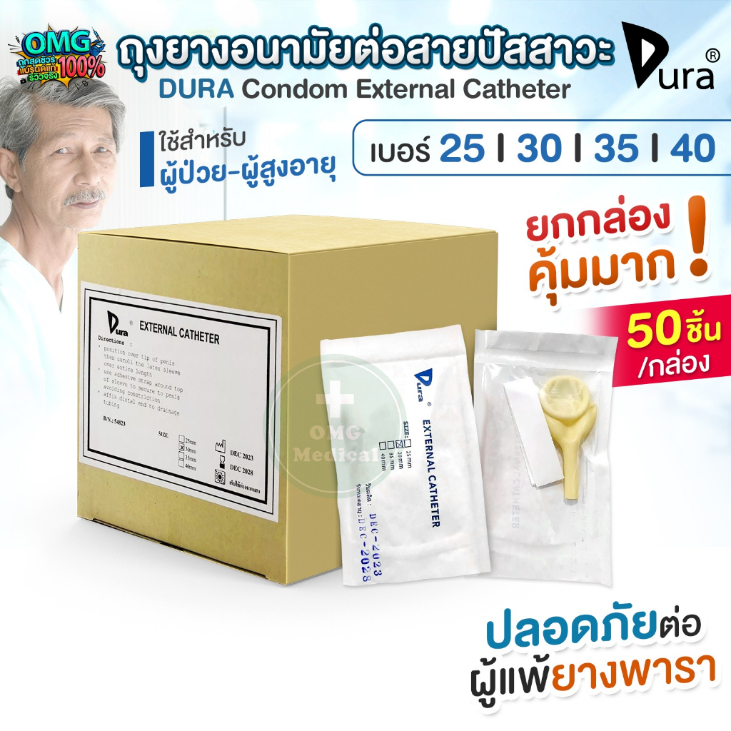 ?ขายส่ง?DURA ถุงยางอนามัย ต่อสายปัสสาวะ Condom External Catheter เบอร์ 25, 30, 35, 40 mm (ยกกล่อง 50 ชิ้น)