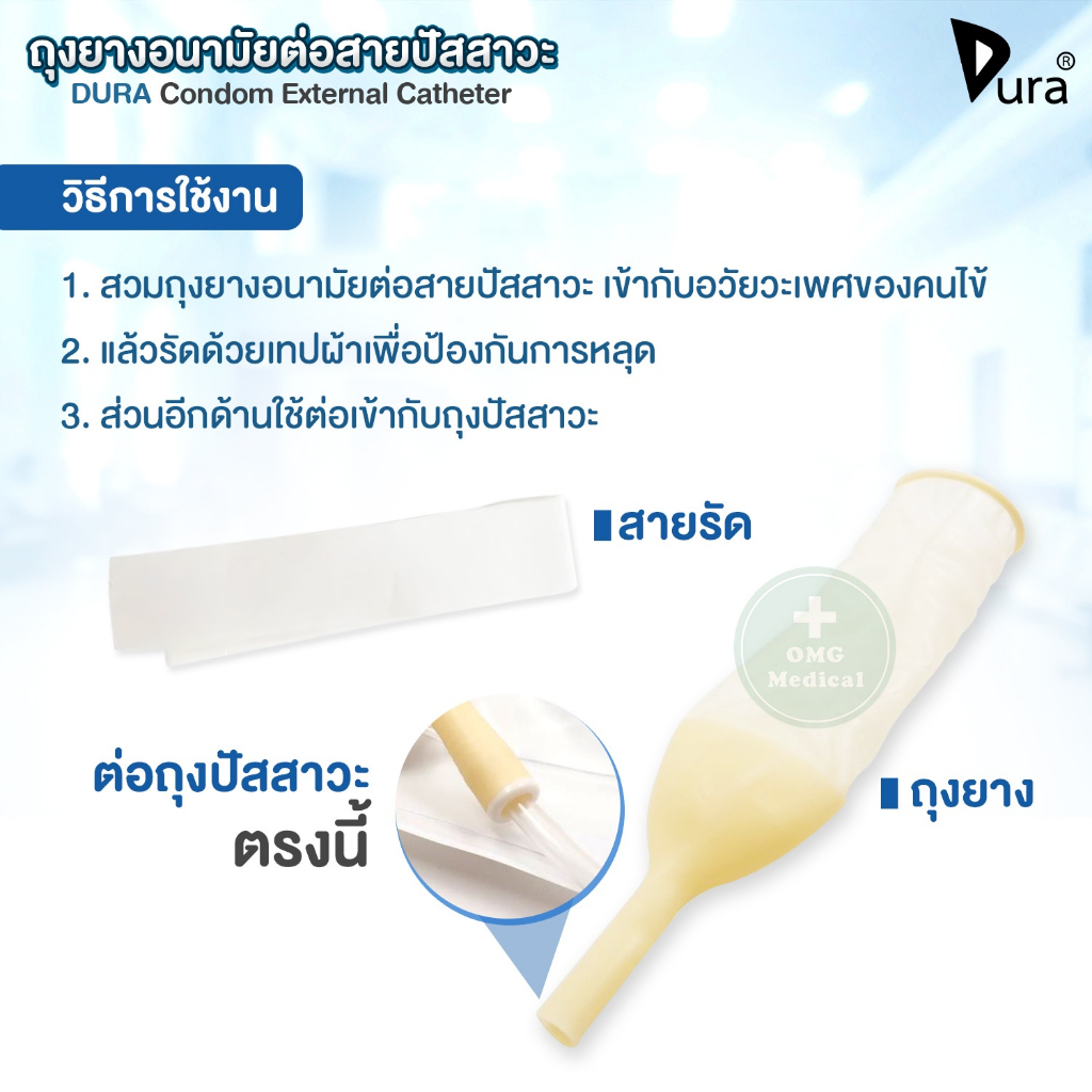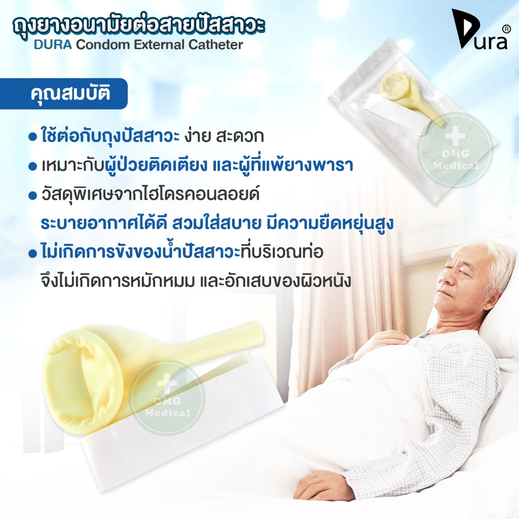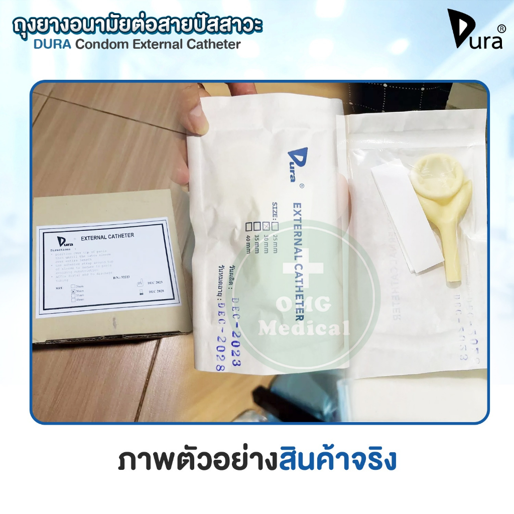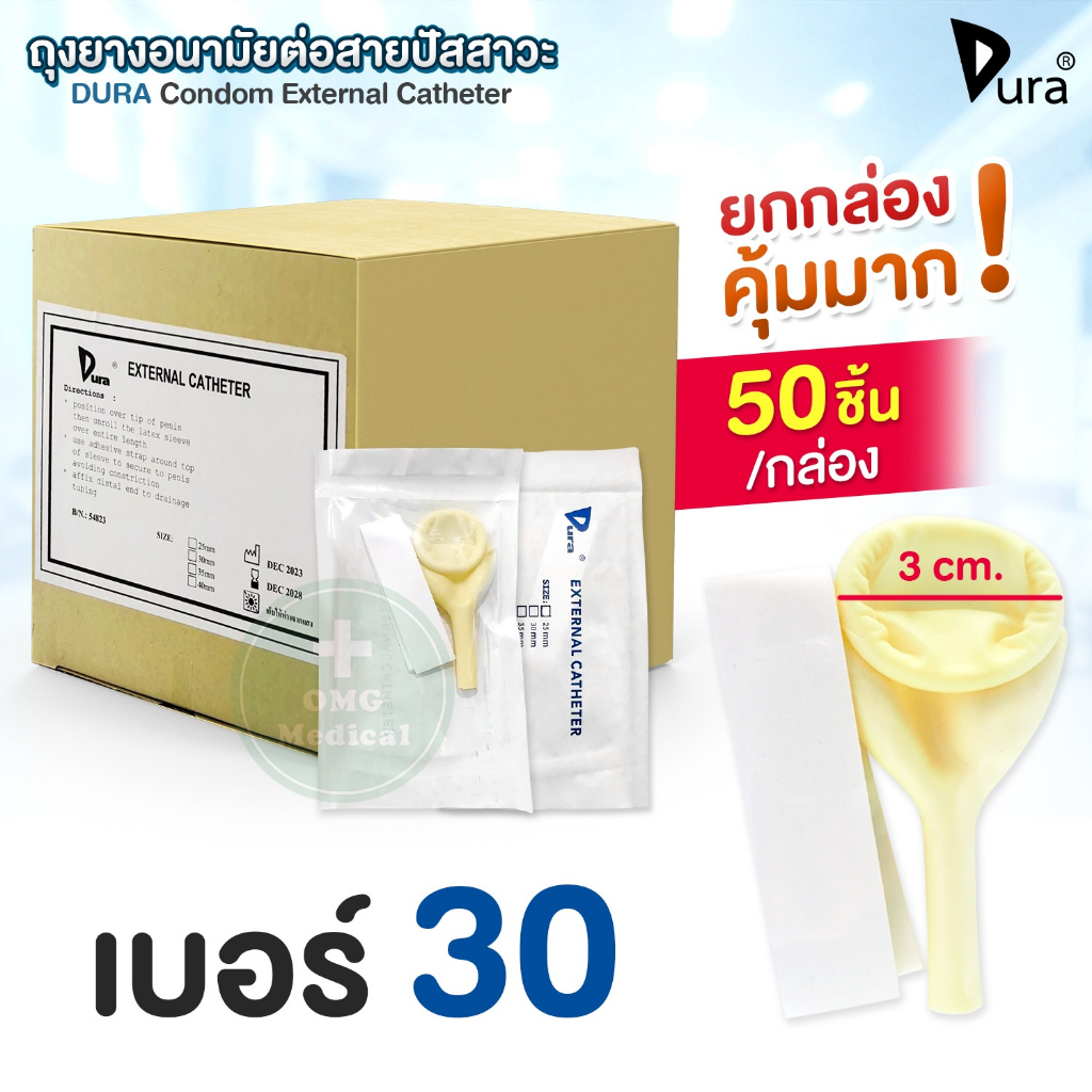 ?ขายส่ง?DURA ถุงยางอนามัย ต่อสายปัสสาวะ Condom External Catheter เบอร์ 25, 30, 35, 40 mm (ยกกล่อง 50 ชิ้น)