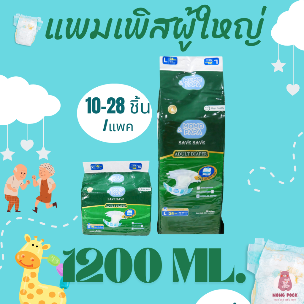 (M-XL) แพมเพิสผู้ใหญ่ 10-28 ชิ้น/แพค (แบบหนา เกรด A) ซึมซับมากถึง 1200cc Adult diapers