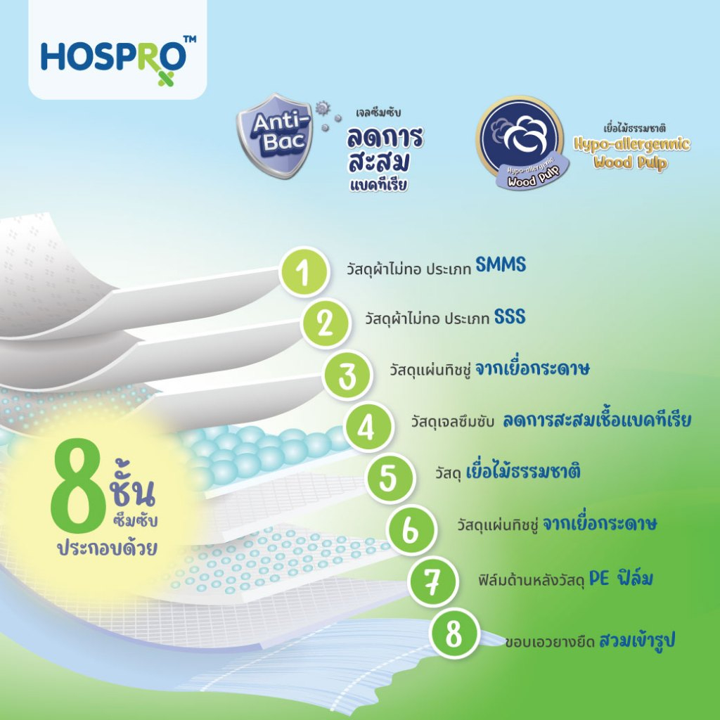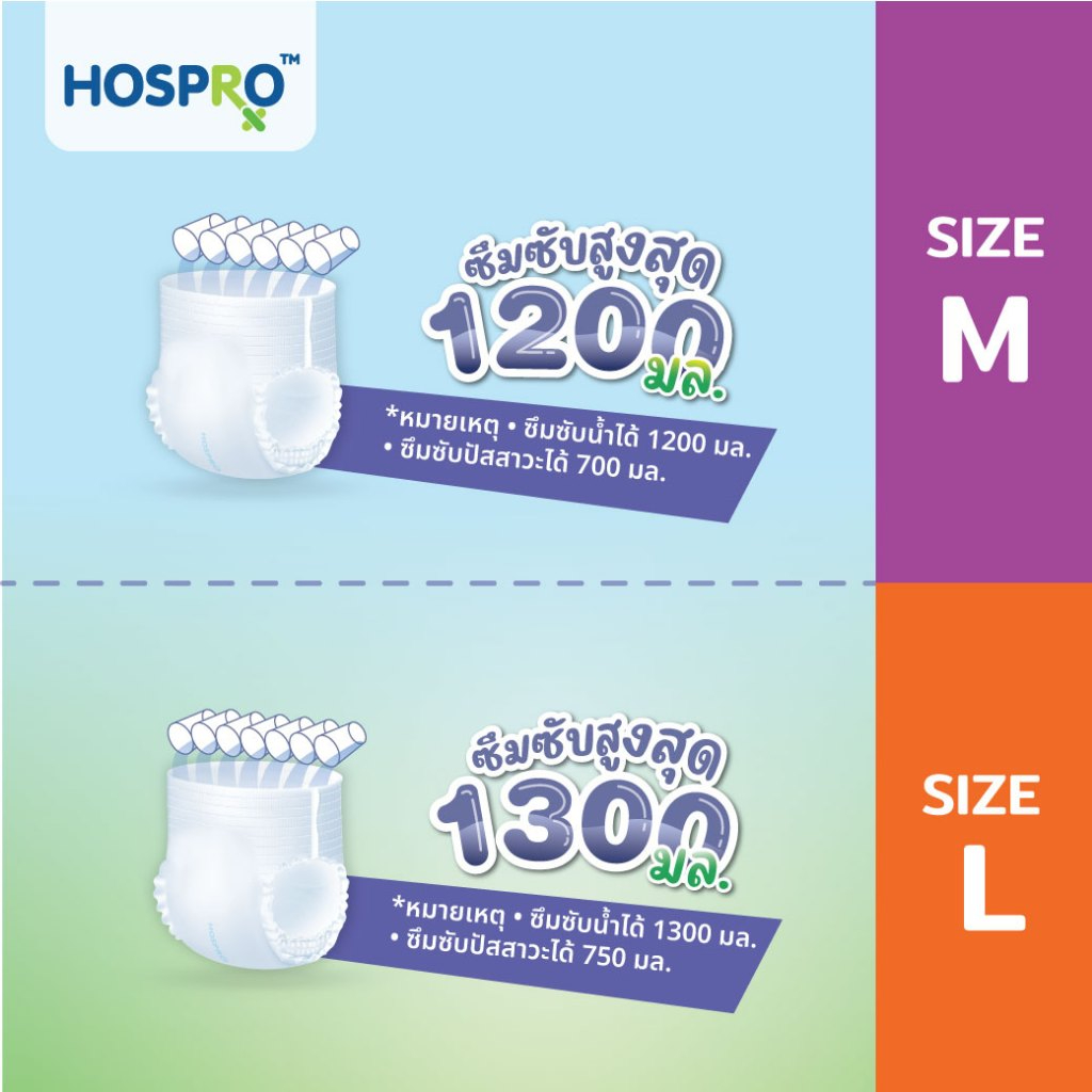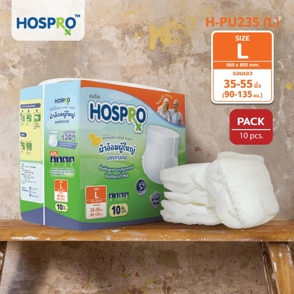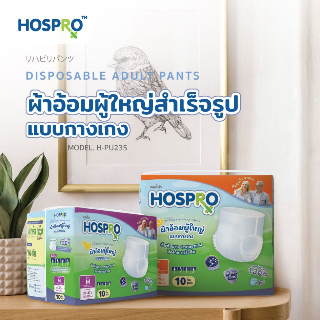 (ซื้อ 6 แถม 6) HOSPRO ผ้าอ้อมผู้ใหญ่ แบบกางเกง ซึมซับสบาย นุ่มสบาย ต้านเชื้อแบคทีเรีย ได้ 120 ชิ้น