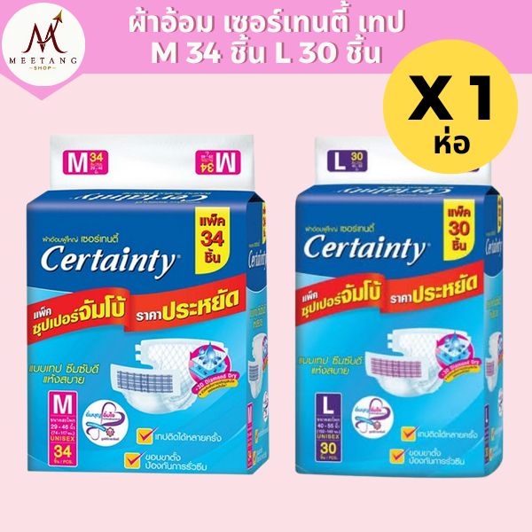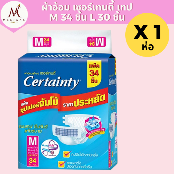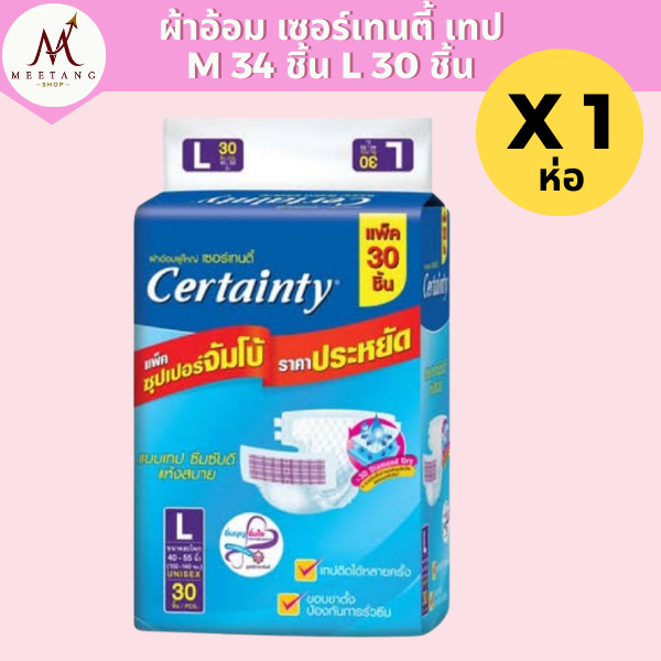 (1 ห่อ)ผ้าอ้อมผู้ใหญ่ เซอร์เทนตี้ เทปกาว M 34 L 30 ชิ้น CertaintyTape แพมเพิสผู้ใหญ่